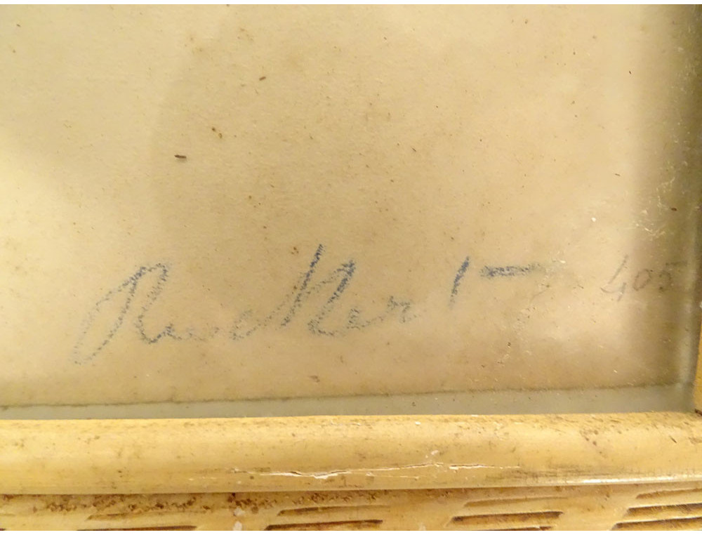 Please note: some accidents and losses on the frame, some stains and blue marks on the paper, wear and tear, see photos.