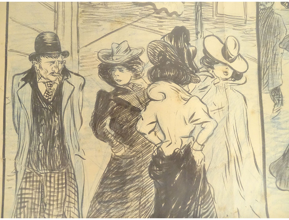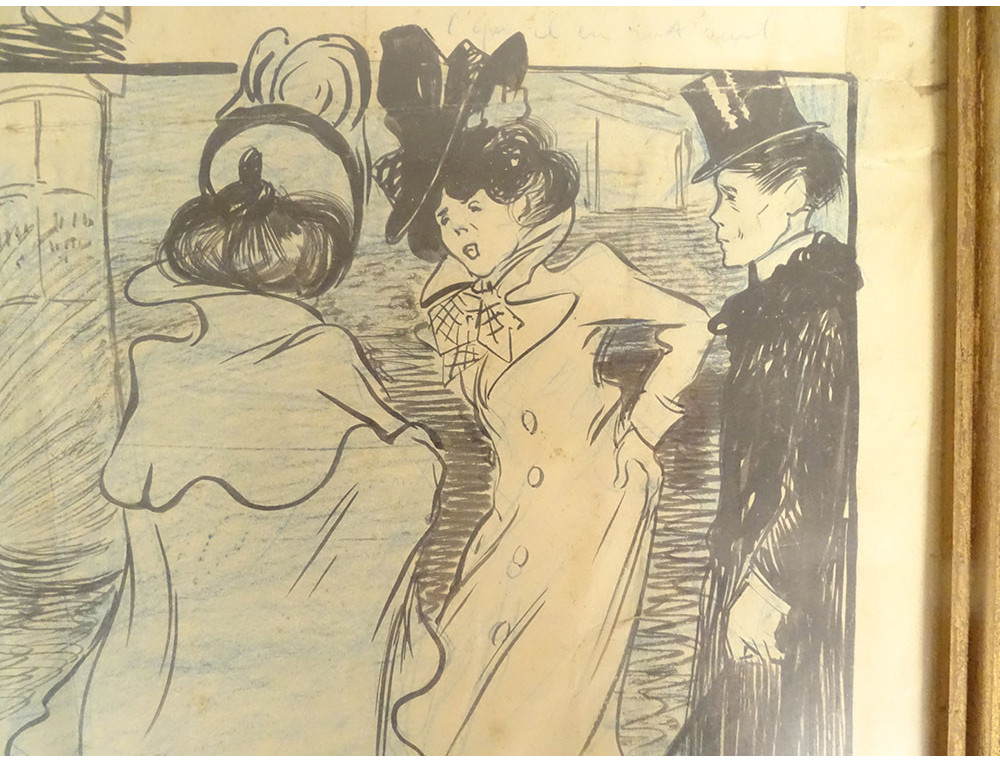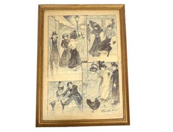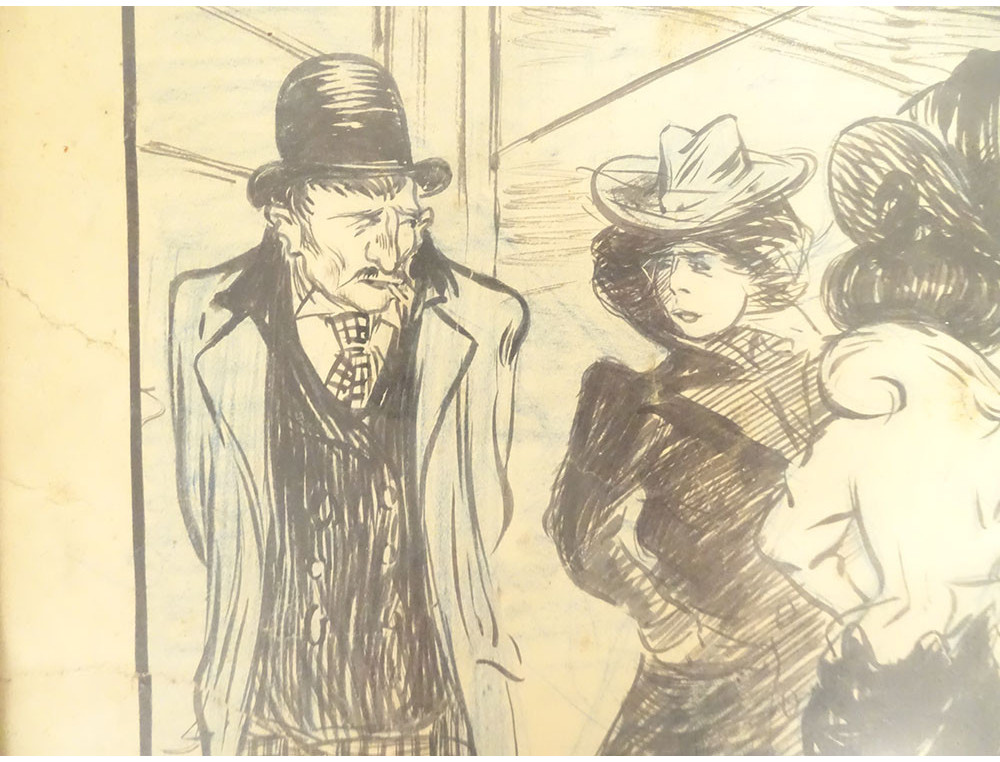 Drawing Francisque Poulbot naughty scene elegant couple bedroom humor 20th century