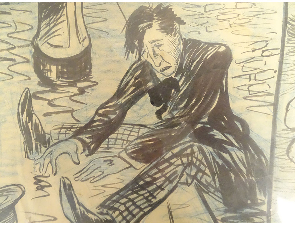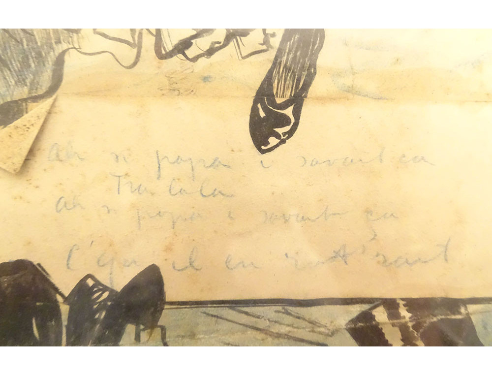 This drawing is in good condition. Signed and annotated, see photos. It is under glass.