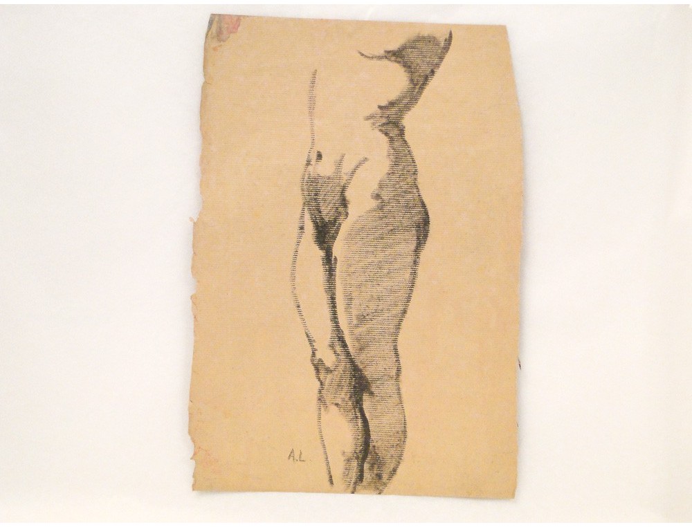 Very nice drawing Laigneau André Villeneuve * representing a nude woman study, conducted on a sample of wallpaper stencil decorated with colorful flowers certainly the manufacture ** Paul Dumas, vintage twentieth century.