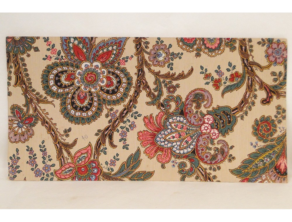 Very nice drawing Laigneau André Villeneuve * representing a nude woman standing study, conducted on a sample of wallpaper stencil decorated with flowers and foliage and colorful stylized certainly the manufacture ** Paul Dumas, vintage twentieth century .