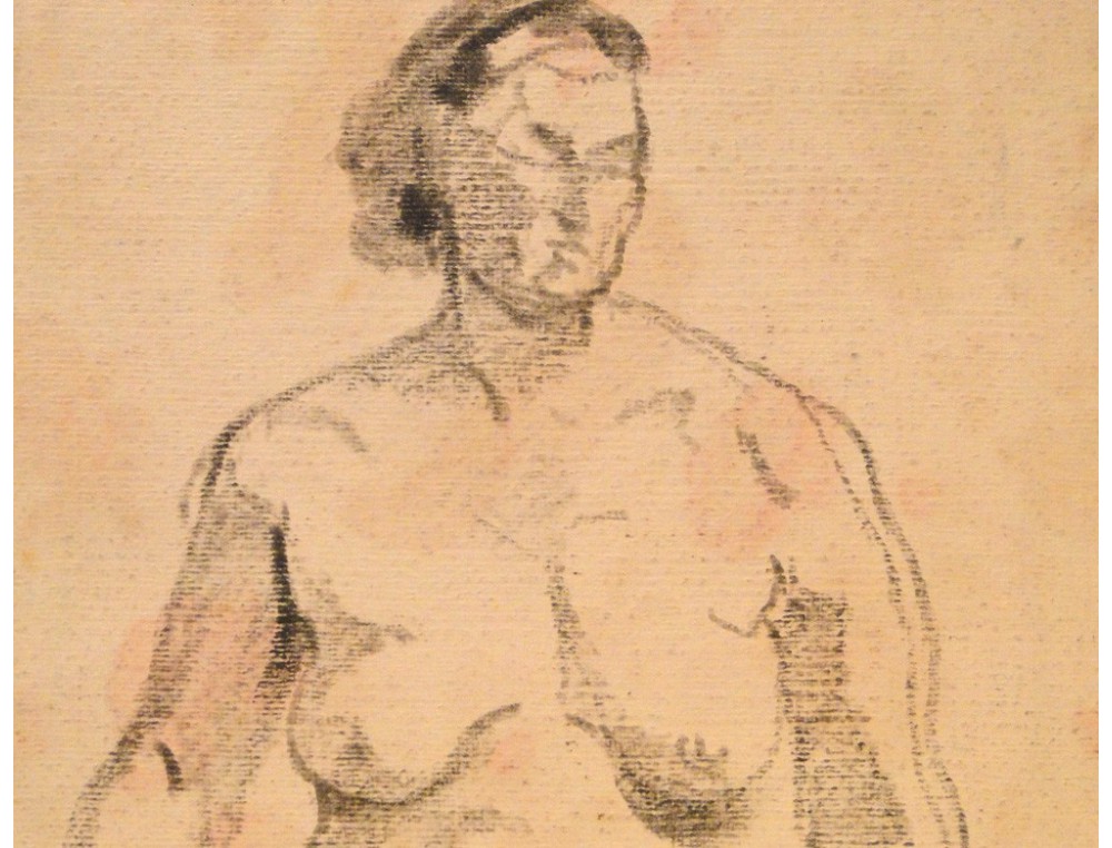 Very nice drawing Laigneau André Villeneuve * representing a nude woman sitting study, conducted on a sample of wallpaper stencil decorated with colorful flowers certainly the manufacture ** Paul Dumas, vintage twentieth century.