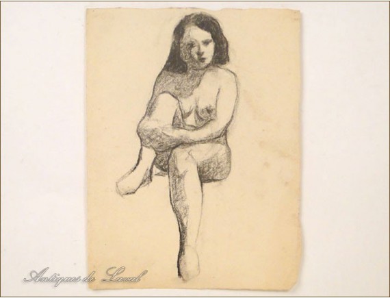 Very nice drawing or sketch of a student certainly the Académie Colarossi *, representing a naked woman, vintage 1930 early twentieth century.