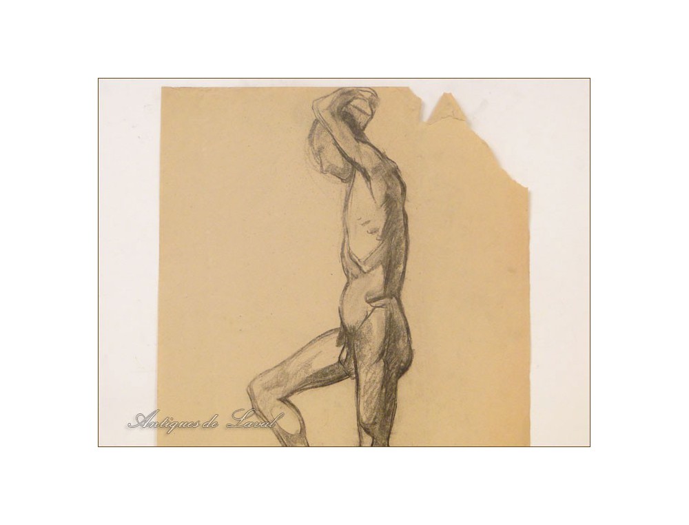 Very nice drawing or sketch of a student certainly the Académie Colarossi *, representing a naked man, vintage 1930 early twentieth century.