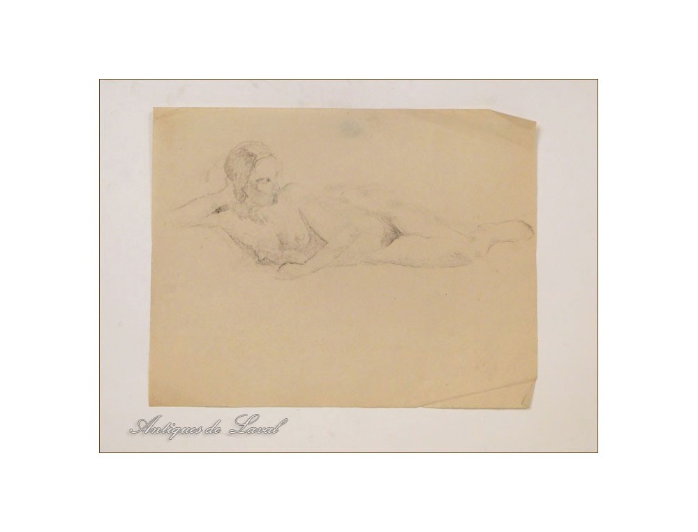 Very nice drawing or sketch of a student certainly the Académie Colarossi *, representing a woman lying naked, vintage 1930 early twentieth century.