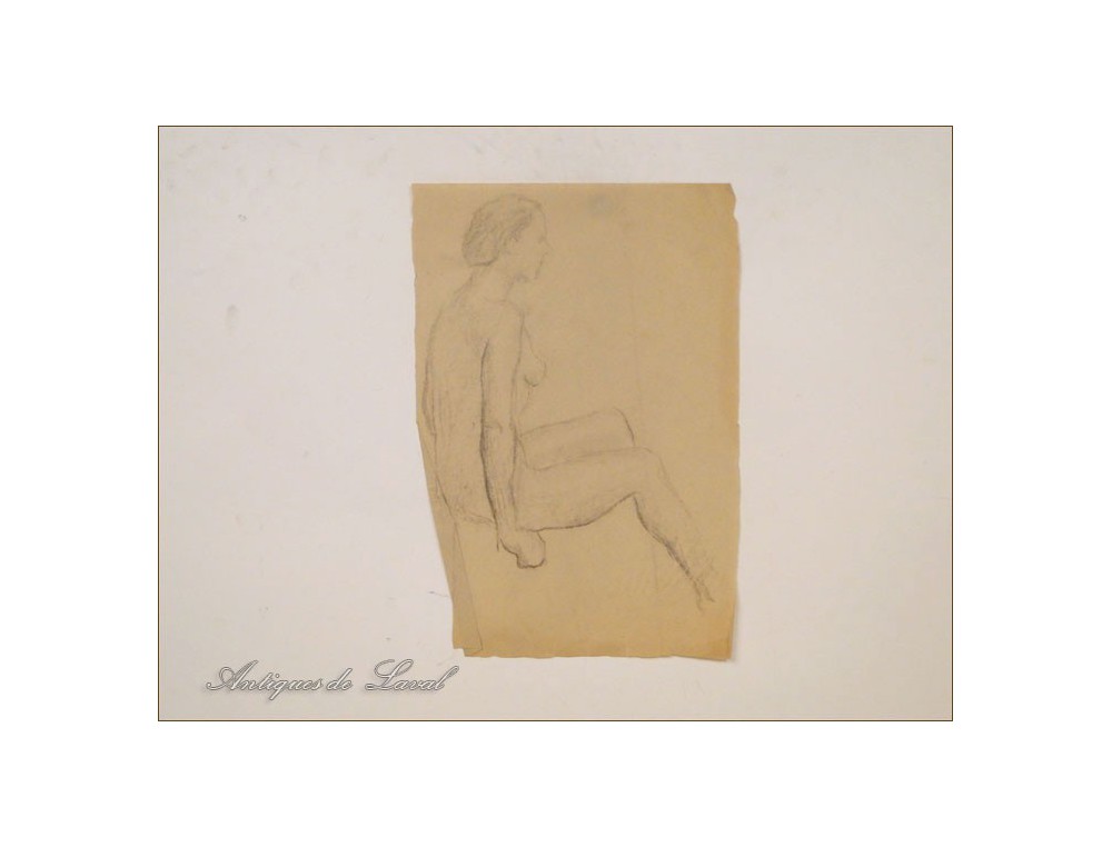 Very nice drawing or sketch of a student certainly the Académie Colarossi *, representing a naked woman in profile, vintage 1930 early twentieth century.