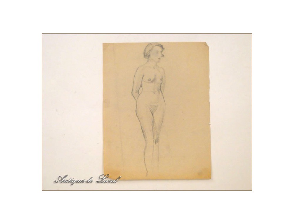 Very nice drawing or sketch Colarossi, representing a study of a nude woman, vintage 1930 early twentieth century.