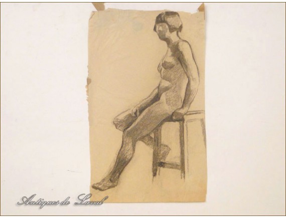 Very nice drawing or sketch of a student certainly the Académie Colarossi *, representing a naked man, vintage 1930 early twentieth century.