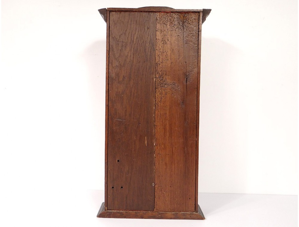 A note: some lack and wear on the polychrome, some tiny accidents and time slots on the box, old worm holes in the back, wear time, see photos.
