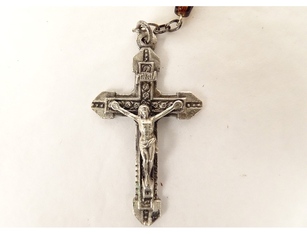 Rosary in silver metal, grains or pearls in jet stone, from the late 19th and early 20th centuries.