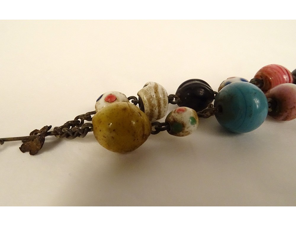 Old rosary, bronze cross with a crucified Christ from the 17th century. With multicolored Murano glass beads (Venice-Italy).
