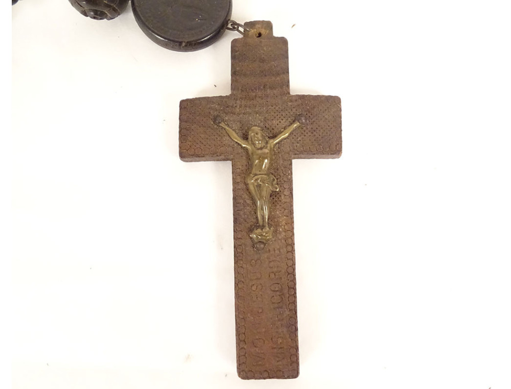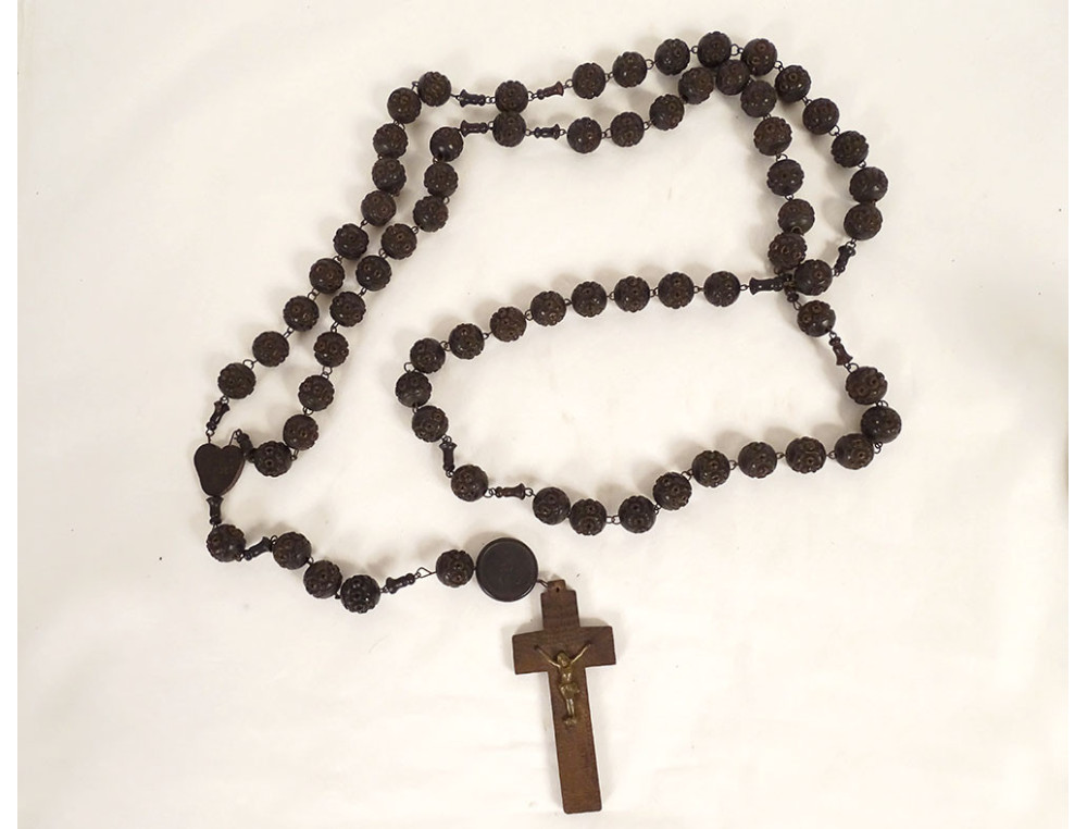 Large carved wooden rosary, Souvenir of Our Lady of Lourdes, 19th century.
