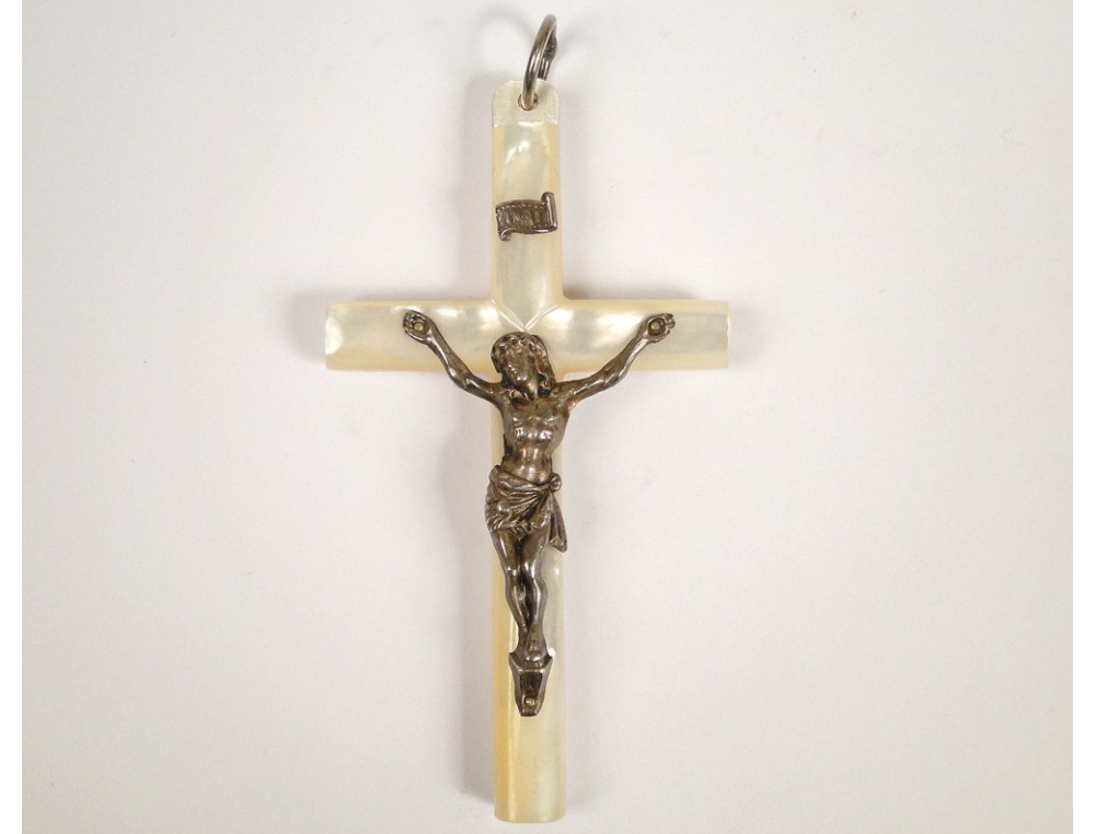Very pretty cross pendant pearl and silver, decorated with the Cross of Christ, of XIXth century.