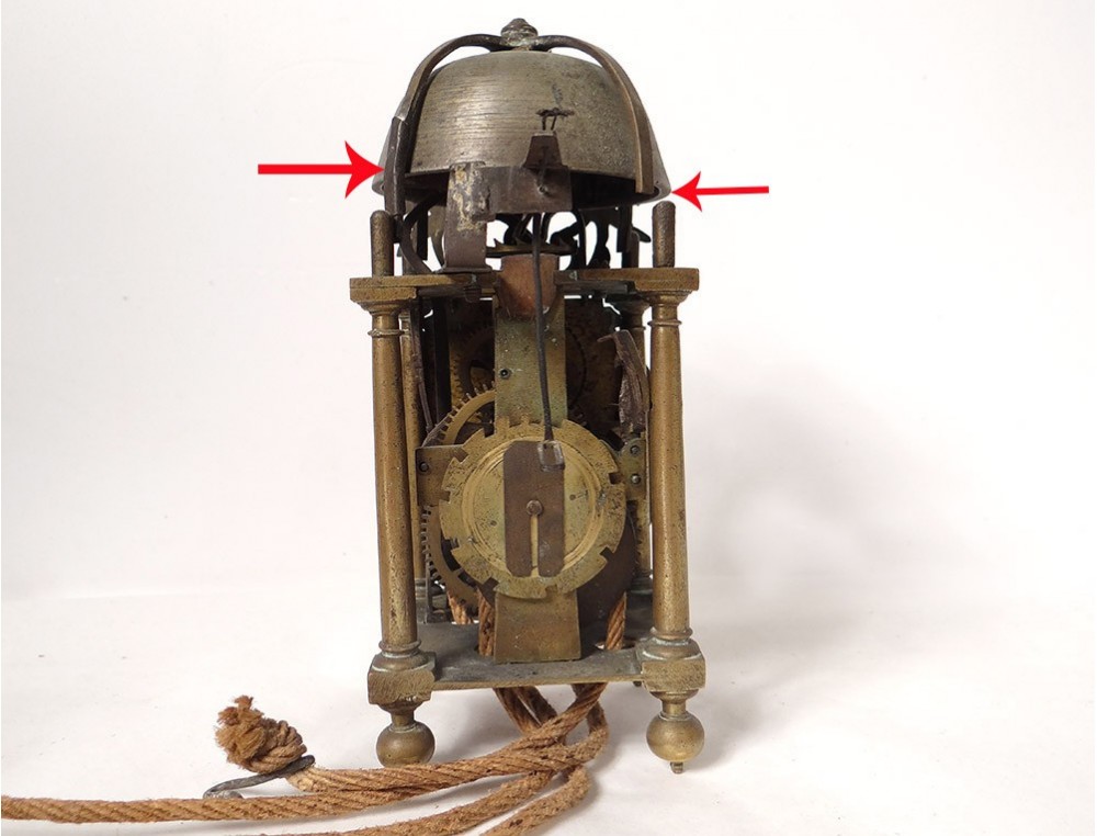 A note: some small shocks and wear of time, in the back the leg holding the bell was resoudée left side and small lack on the right side (see red arrows), wear time, look at the photos.