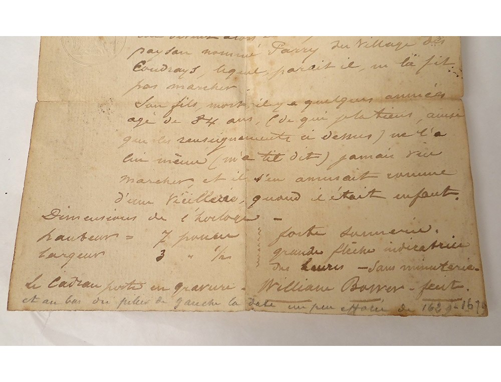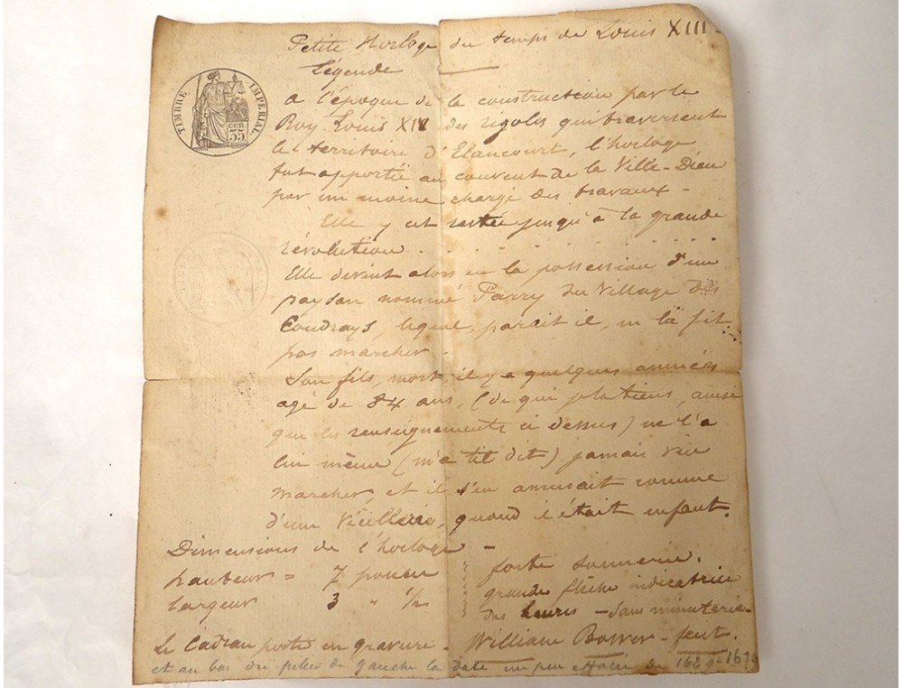 This clock is in good condition. It will be revised, we have its weight and its pendulum (which has been changed). We attach a posterior paper (with imperial stamp) which traces the history of this clock.
