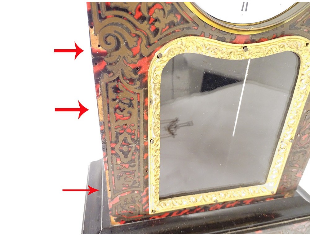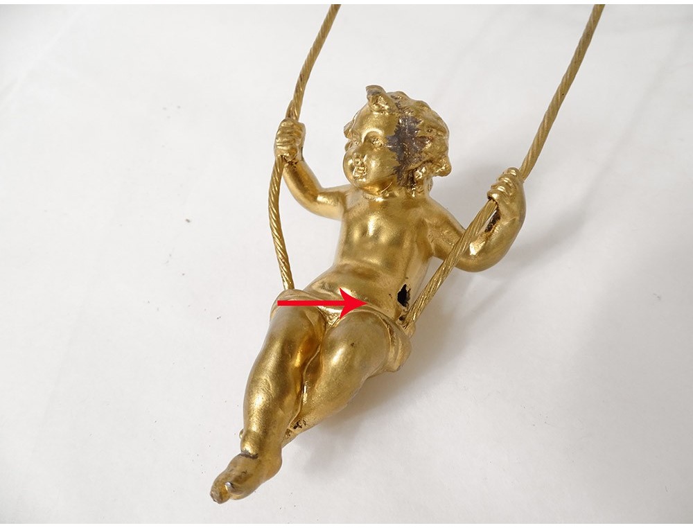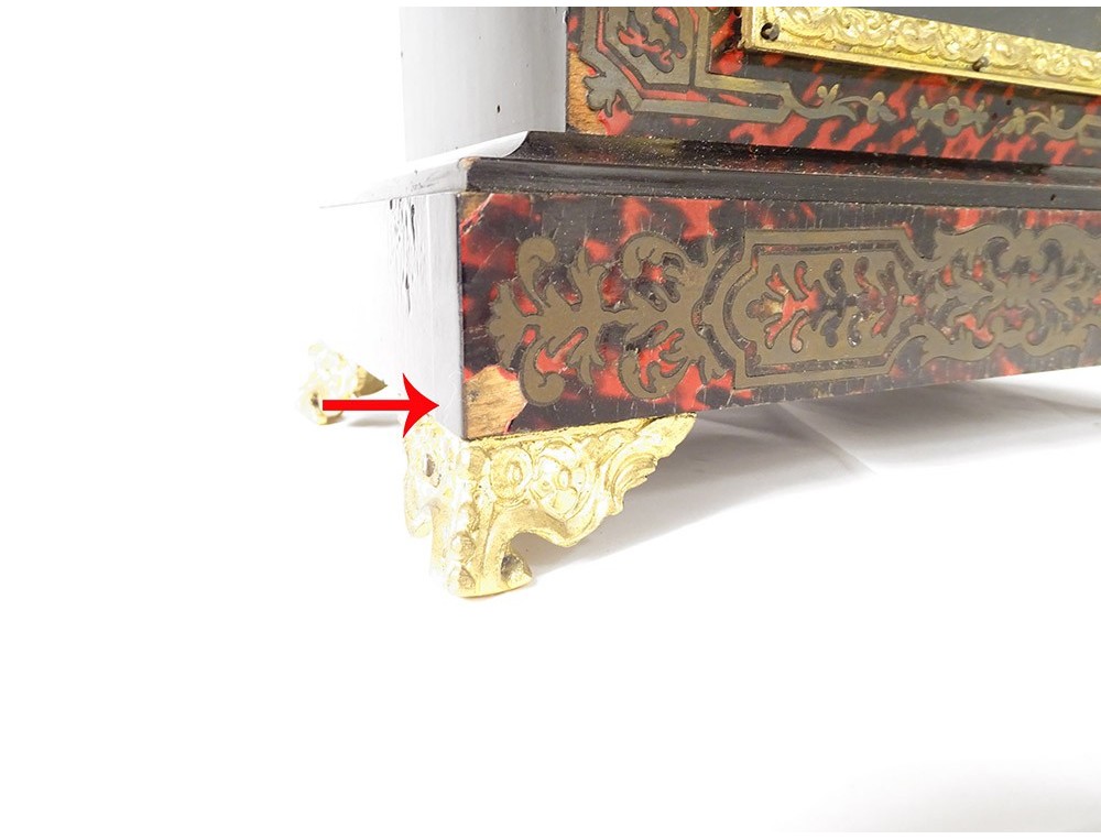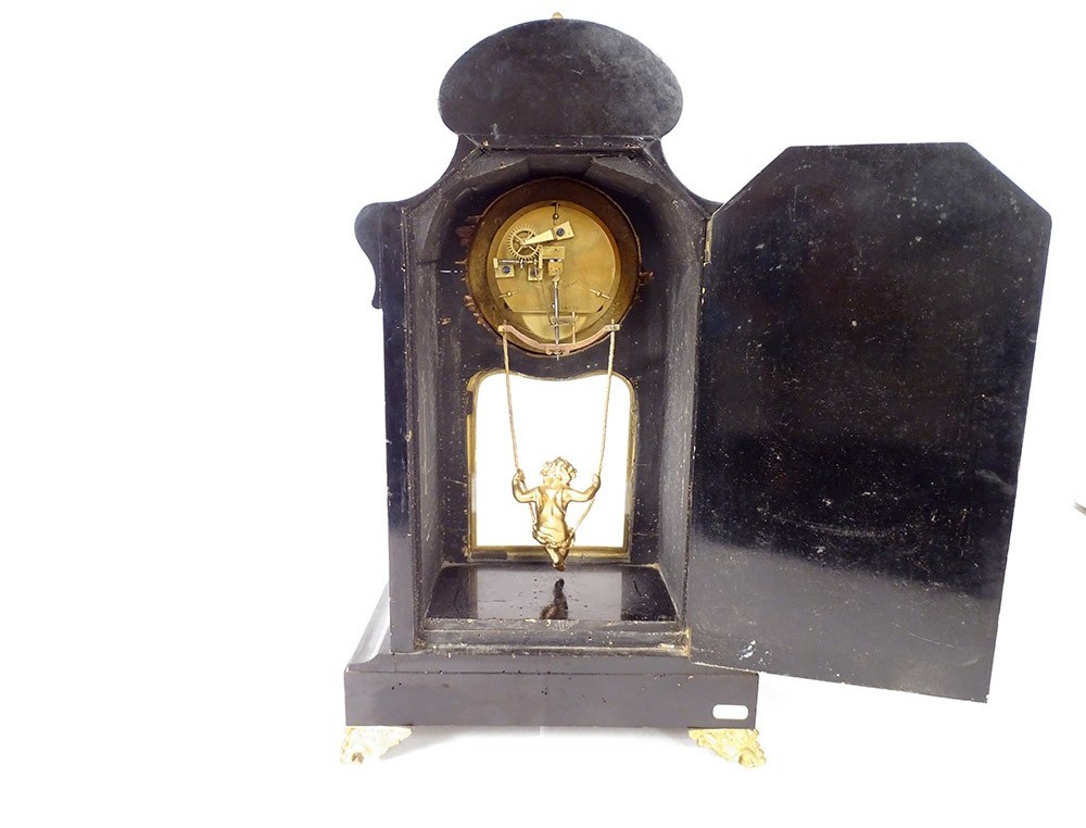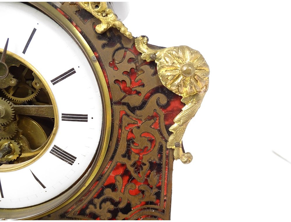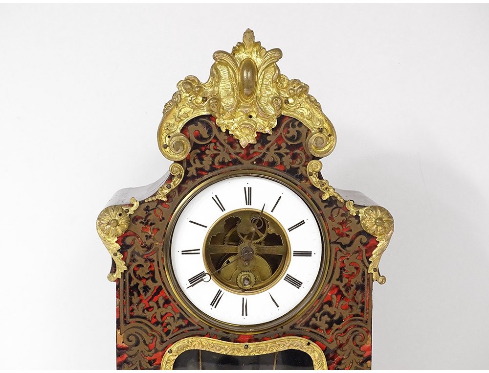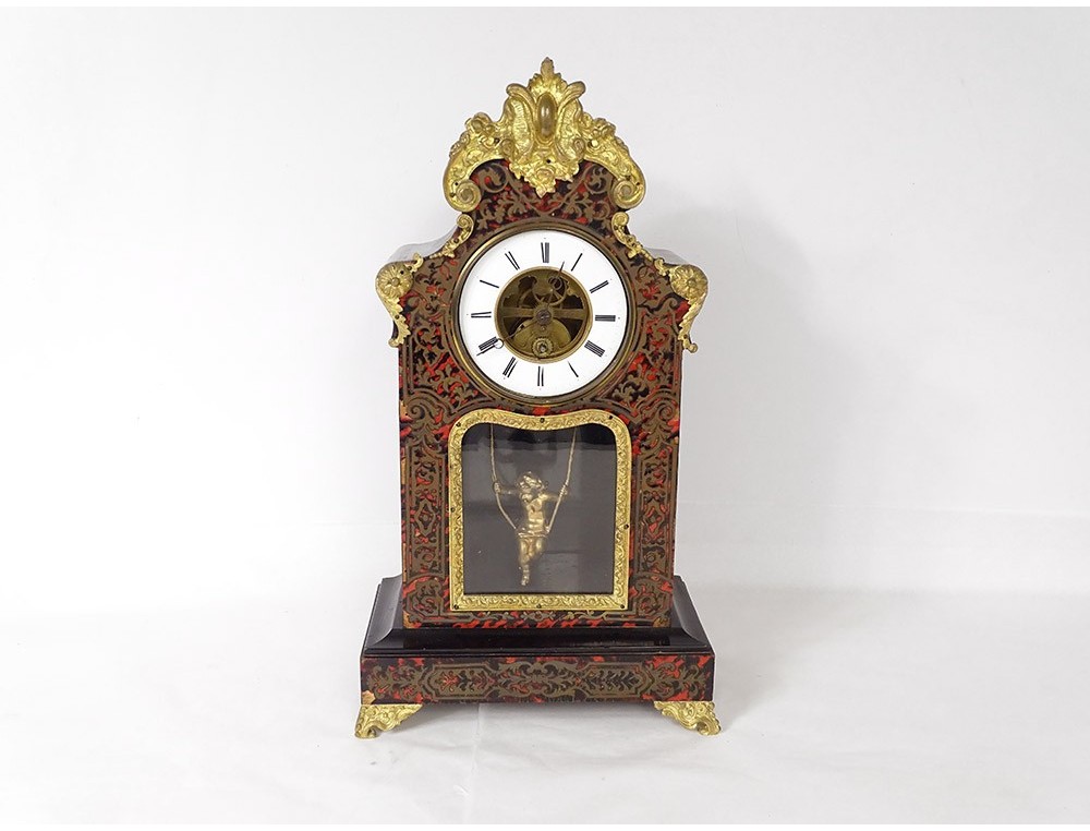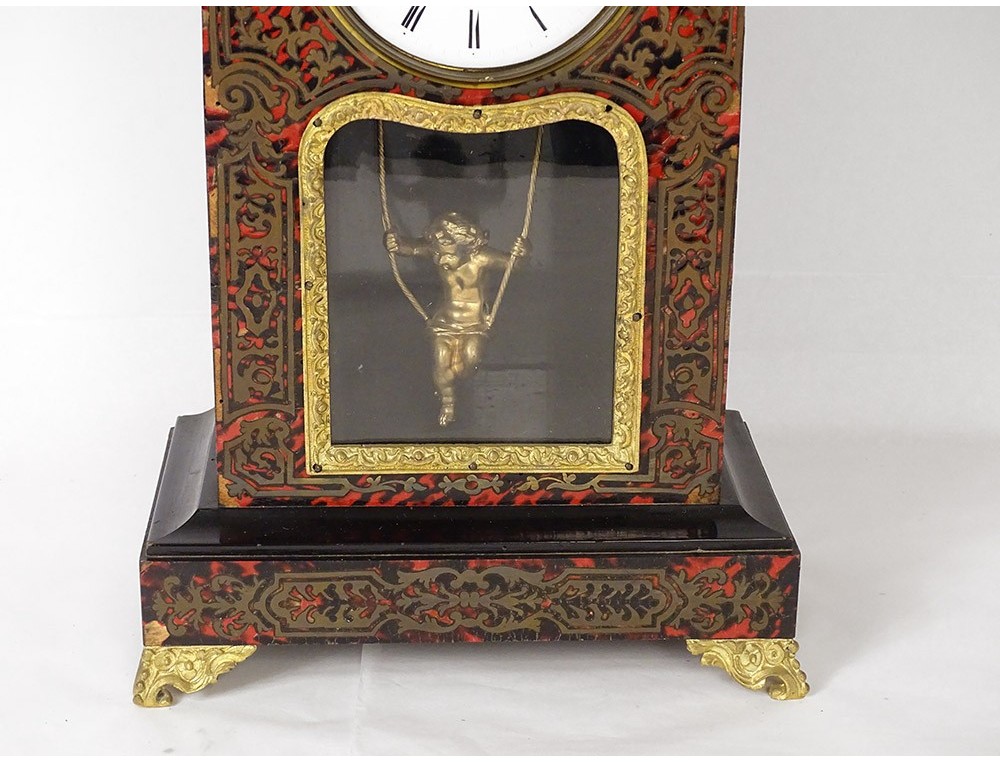 Pendulum in ball marquetry and finely chiseled gilded bronze, movement called Farcot with balance in the shape of an angel oscillating back and forth. XIXth period