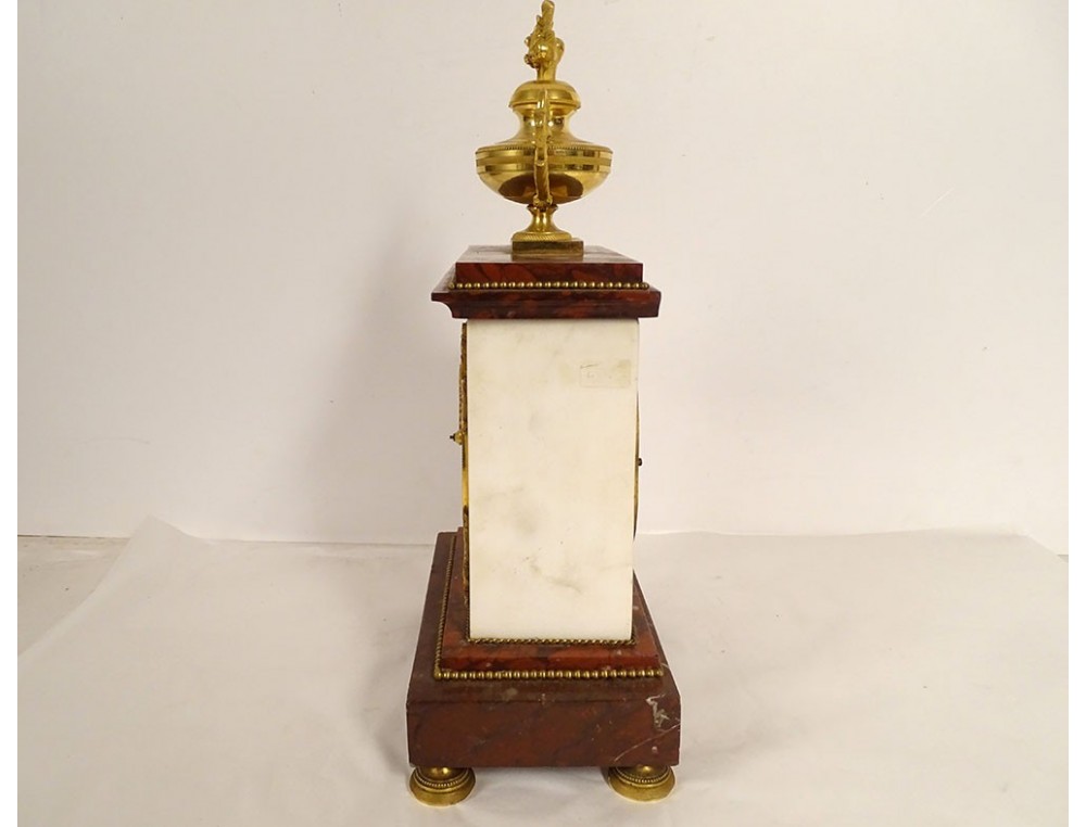 Morello red marble and white marble terminal clock, gilt bronze ornamentation, decorated with a beautiful cup with handles on the top, enamelled dial with Roman numerals, signed Coeur & Fils* in Paris, from the 1st Empire period, early 19th century.