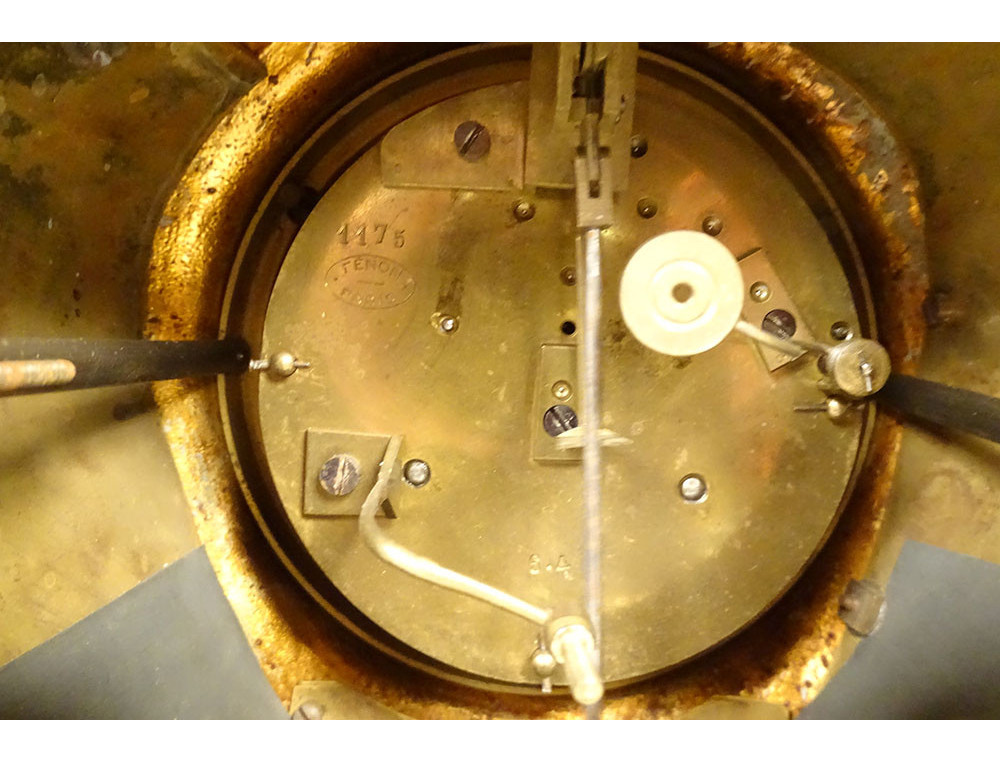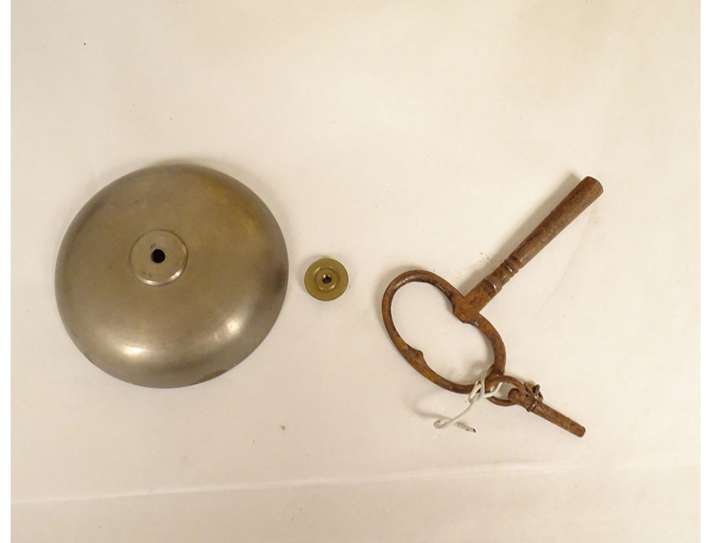This clock is in good condition. It has been fully serviced and works perfectly. We have its key and pendulum.