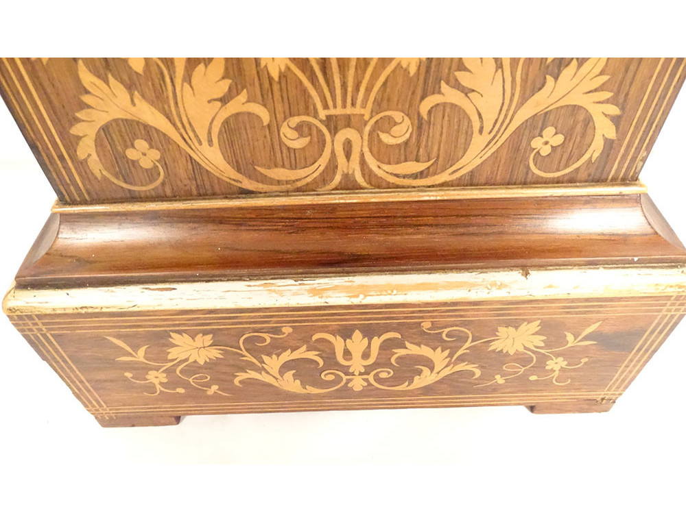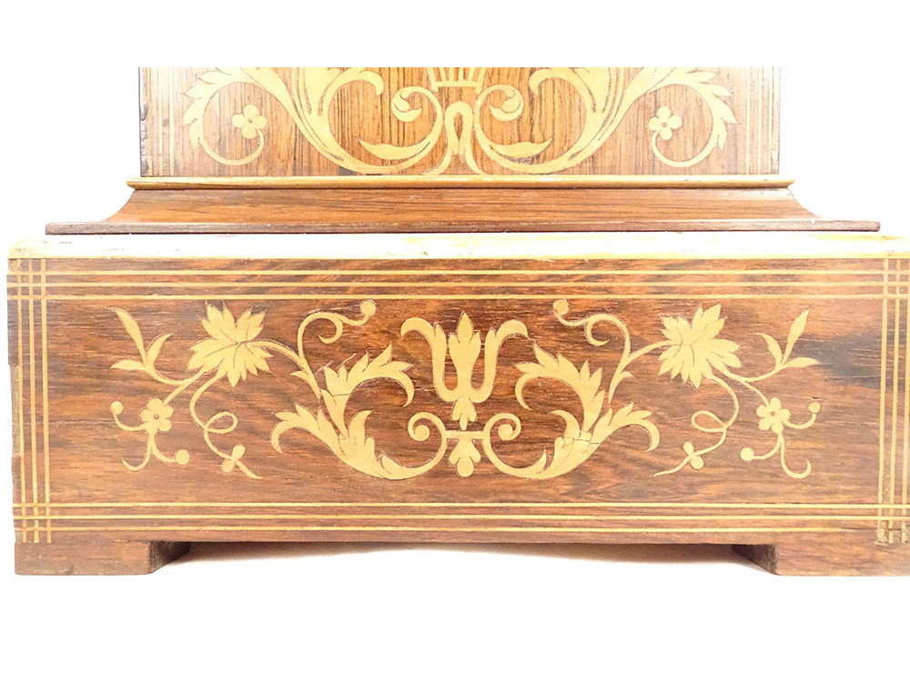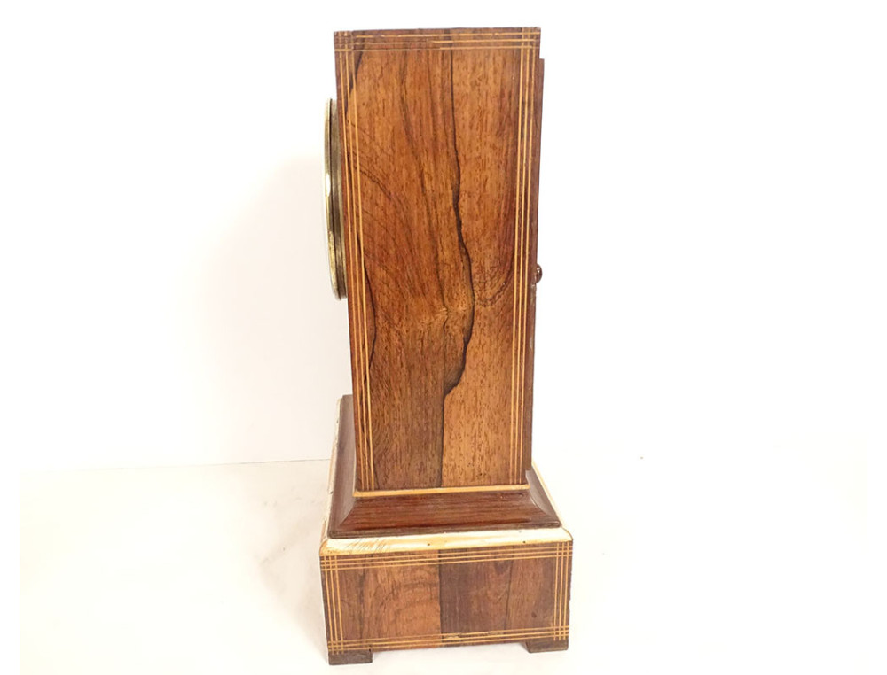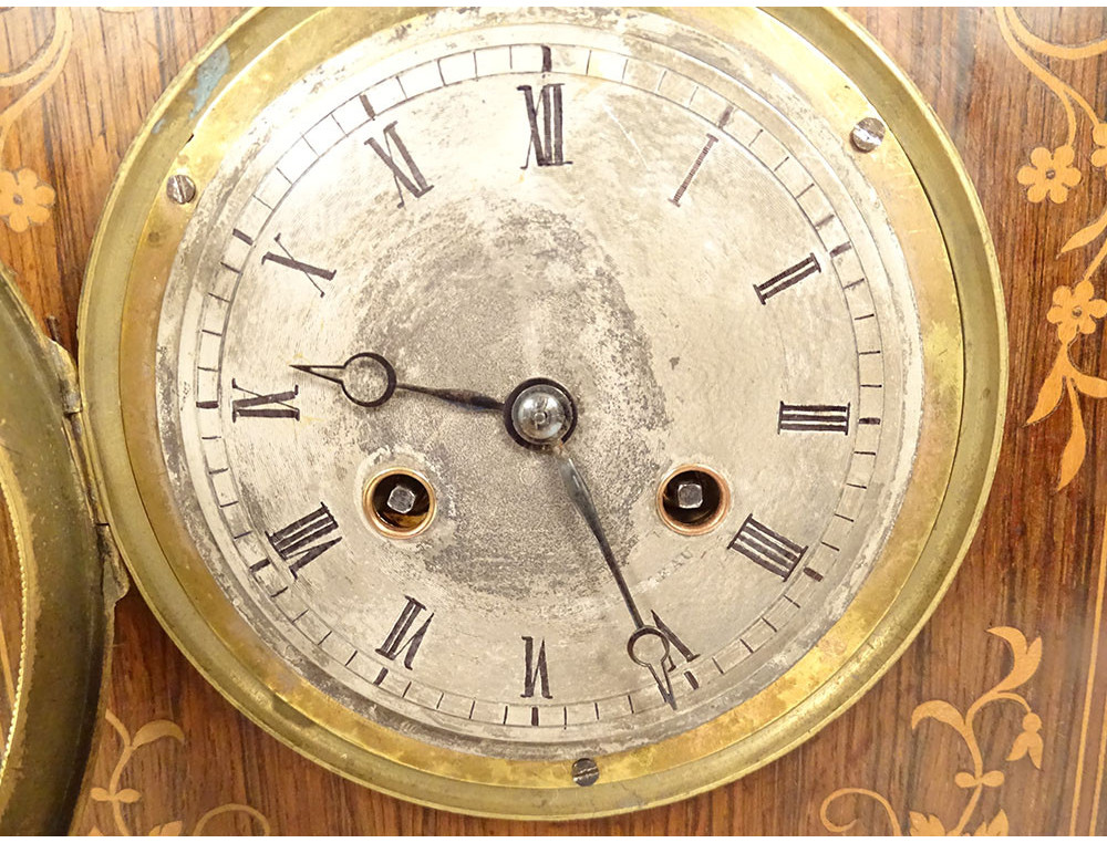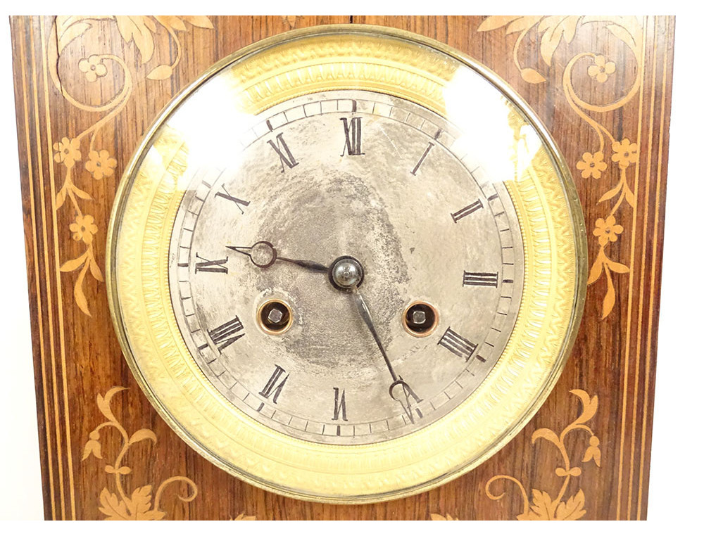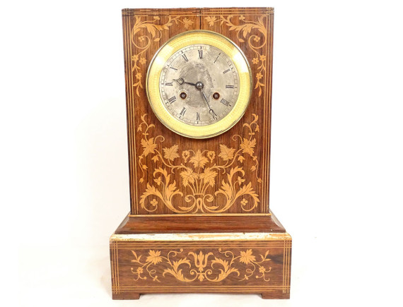 Charles X mantel clock in rosewood marquetry with flowers and foliage, 19th century