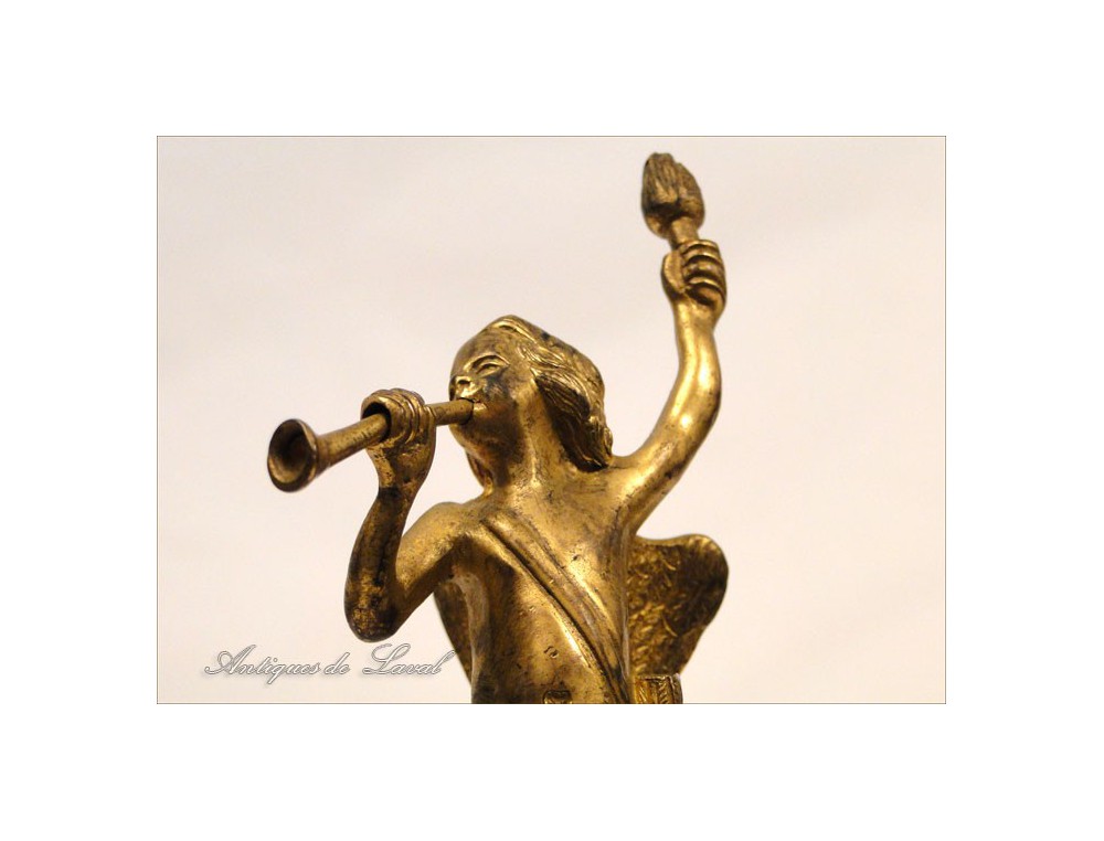 Watch stand finely chiseled gilt bronze, decorated with an angel playing a trumpet on top as well as flowers and foliage, punch in "Crowned C" *, Louis XV period eighteenth century.