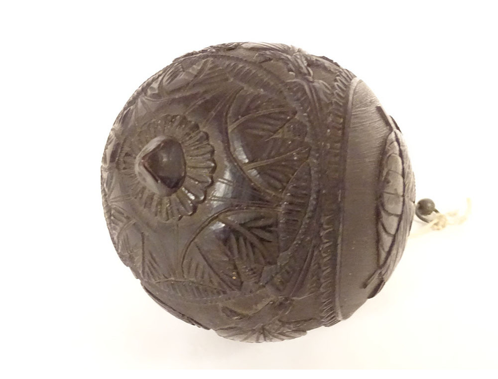 Like corozo, it was worked by sailors and also by convicts. The latter worked it to pass the time, but also and especially to earn a little money to improve their daily lives. It can also be attributed to sailors during their long voyages. These coconut or corozo objects are beautiful examples of folk art.