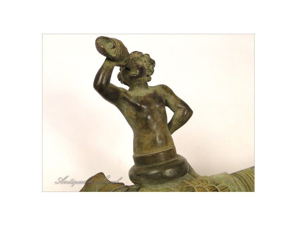 Faucet bronze, representing the Greek god Triton * sitting on a fish and blowing his conch, of XIXth century.