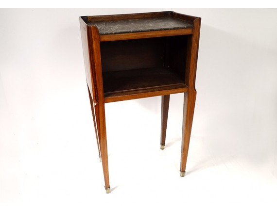 Bedside table wood rose marquetry fleur lys marble Sainte-Anne nineteenth century