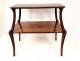 Tea table with two trays, signed L.Majorelle * model "Gui At the New Year", wood veneer of various species (mahogany, walnut ...), decorated with inlaid branches of mistletoe and butterflies , corner curved legs, gilt bronze handles, Art Nouveau period late nineteenth and early twentieth centuries.