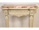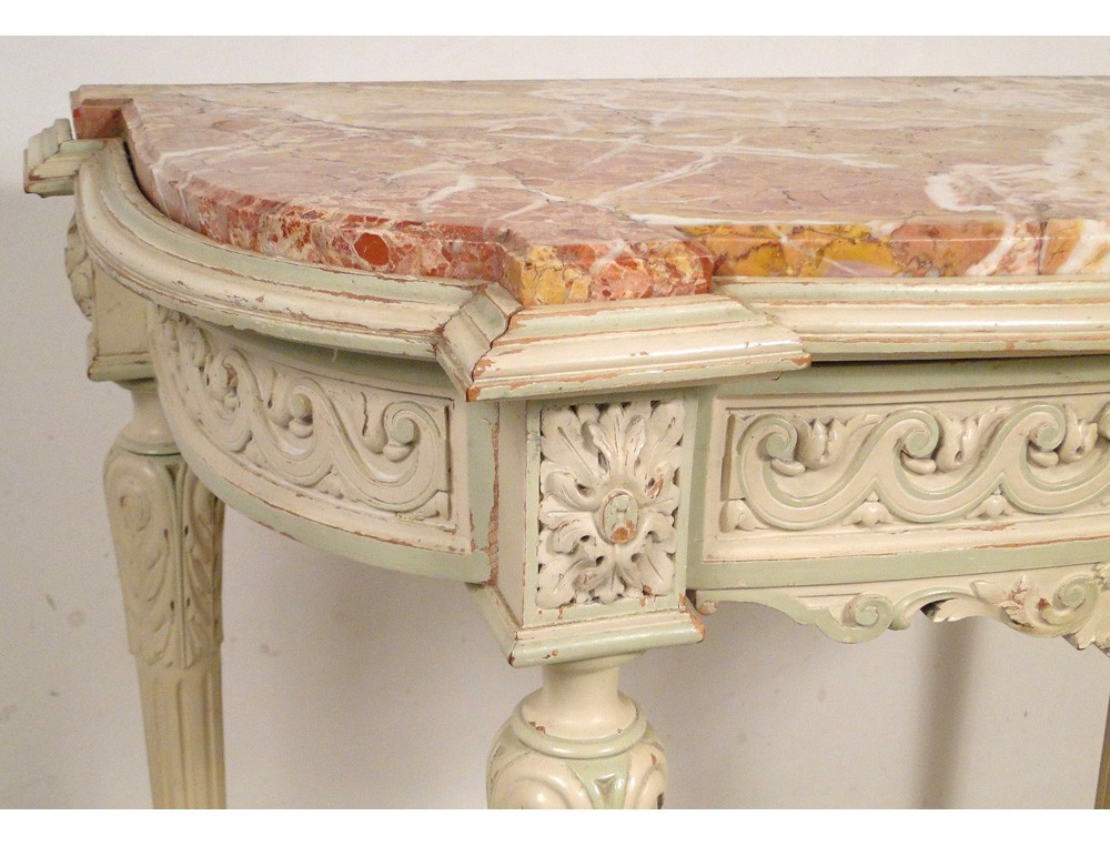 Superb Louis XVI console, lacquered wood intricately carved, decorated with jewels and friezes plant as well as a bouquet of flowers between the legs, fluted legs, marble top, opening a drawer, Napoleon III nineteenth century .