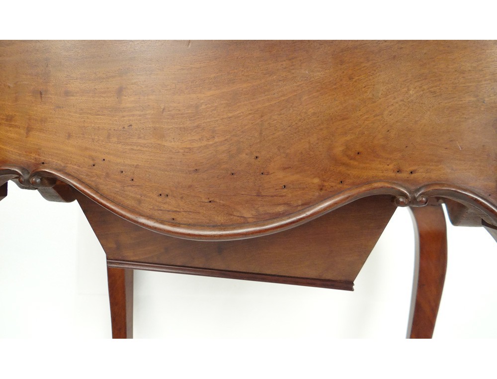 Superb worker or Louis XV table book wood finely carved rosewood, decorated with leaves and shells, snails feet, with two drawers, sycamore veneer interior discovering ice mercury and two floors of storage space, period Napoleon III nineteenth century.