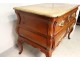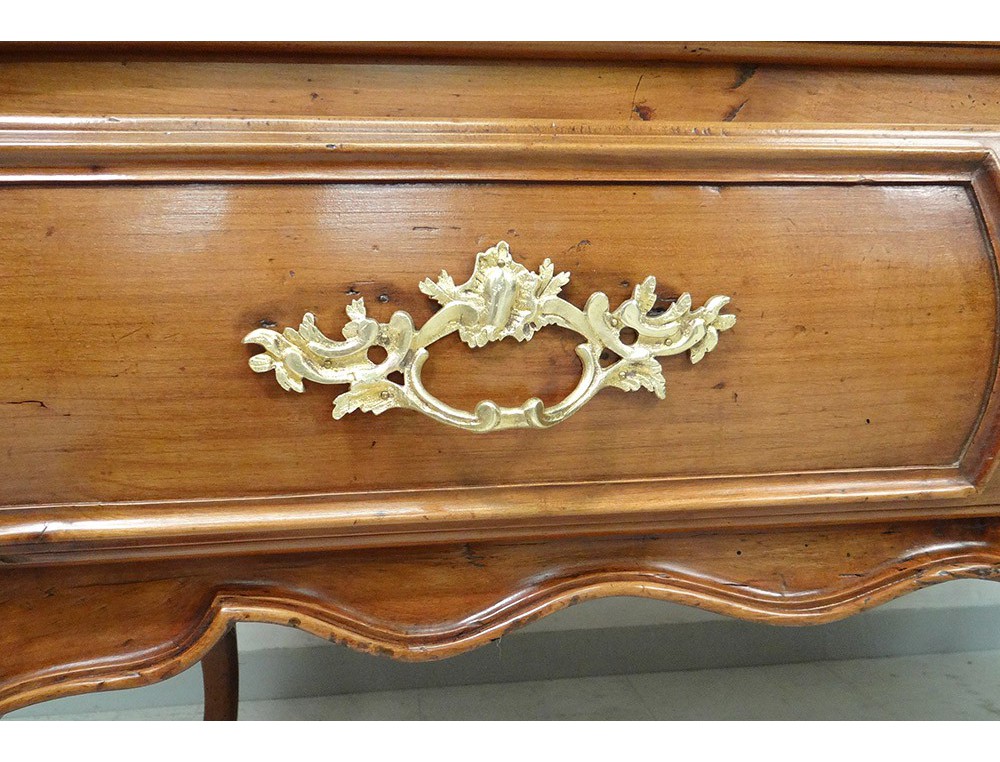 Commode Louis XV called Provencal jumper elegantly curved cherry wood carved and molded front and sides, 2 drawers with handles and escutcheons gilded bronze, resting on four curved feet snails, marble top, of XVIIIth century.