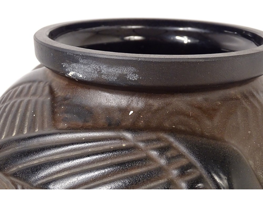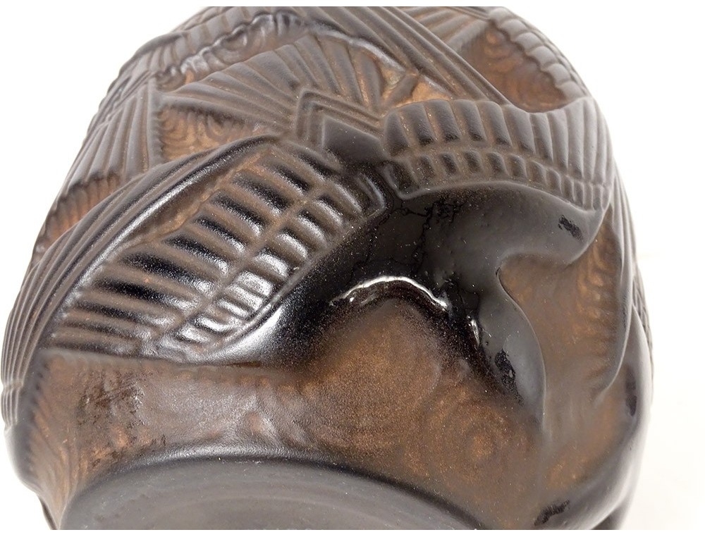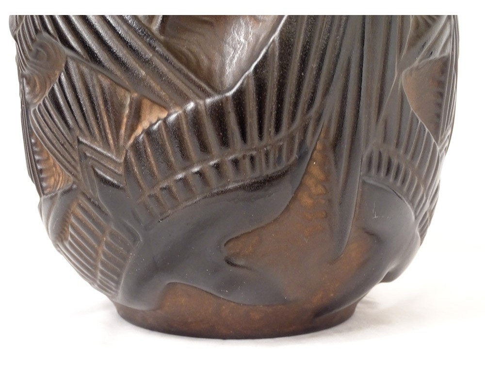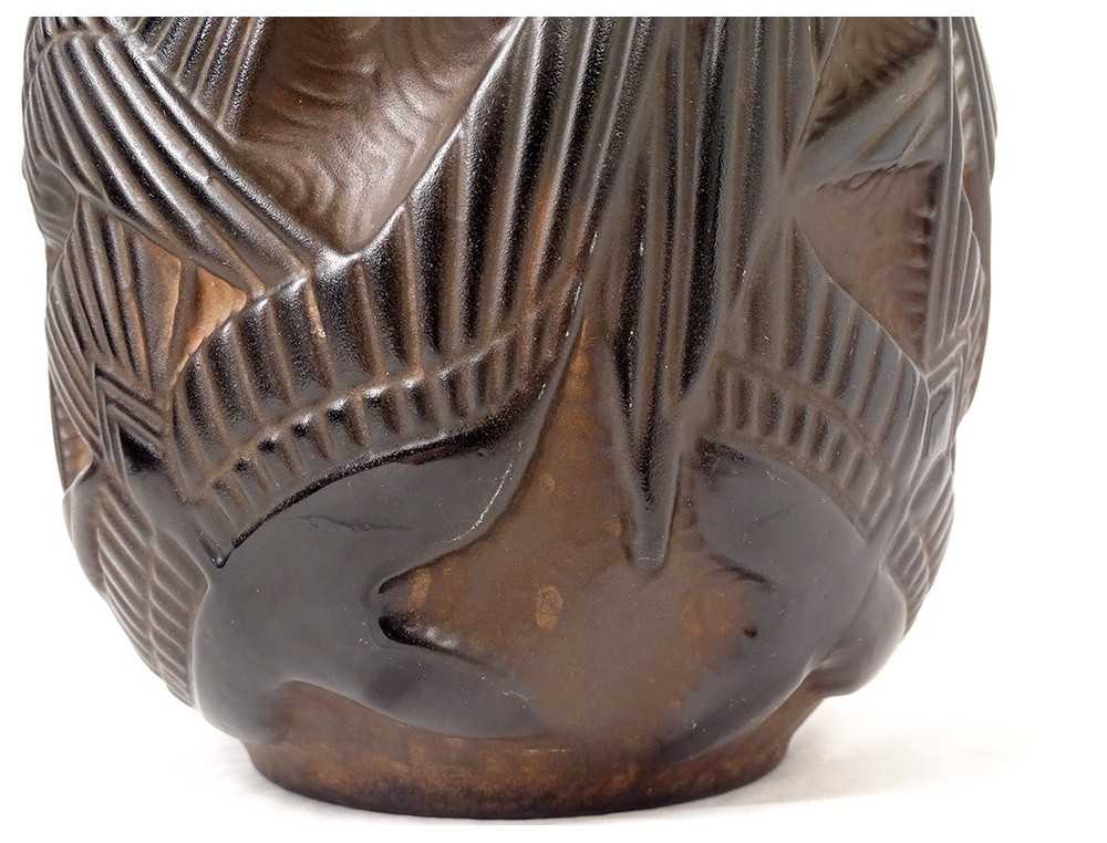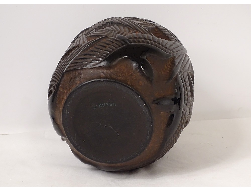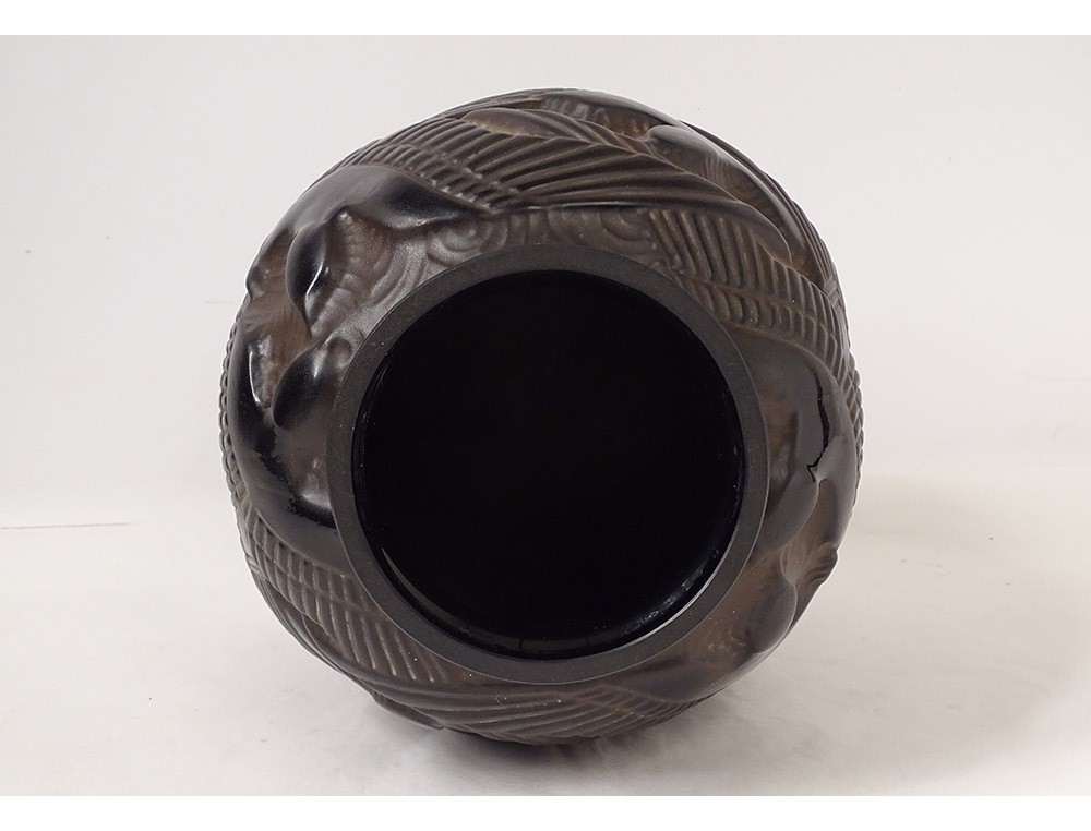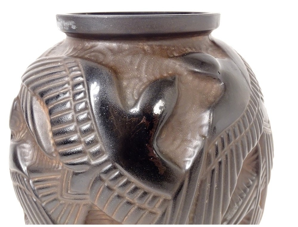 Large Pierre d'Avesn * vase in black pressed glass with brown patina, Hirondelles model, Art Deco period, 20th century.