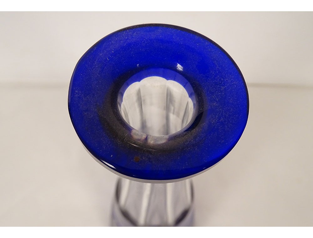 Wine carafe in cut crystal, most likely from Baccarat or Saint-Louis, cobalt blue in color, from the early 20th century.