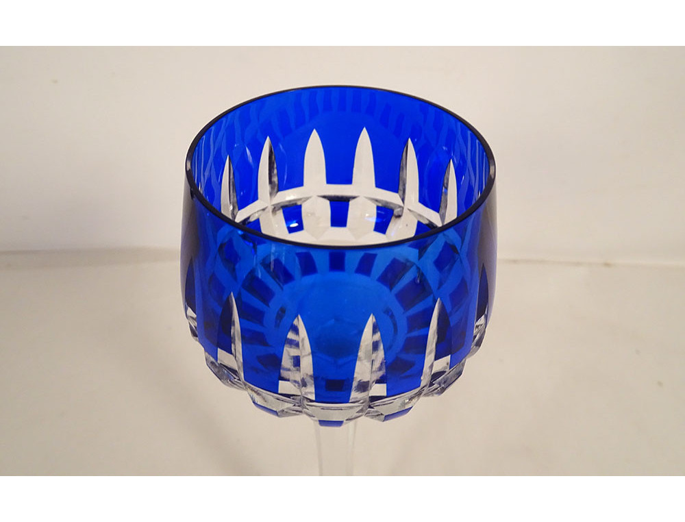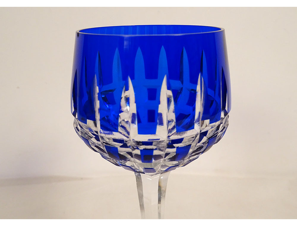 Rhine wine glass called "Roemer" in Saint-Louis cut crystal, red color, Manhattan model, from the 20th century.