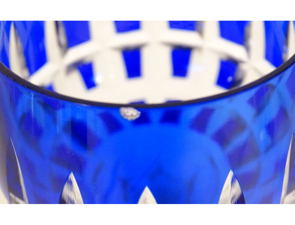 This glass is in good condition. Signed with a "cristal Saint-Louis France" label. We also have other glasses of this style in different colors for sale on this site.