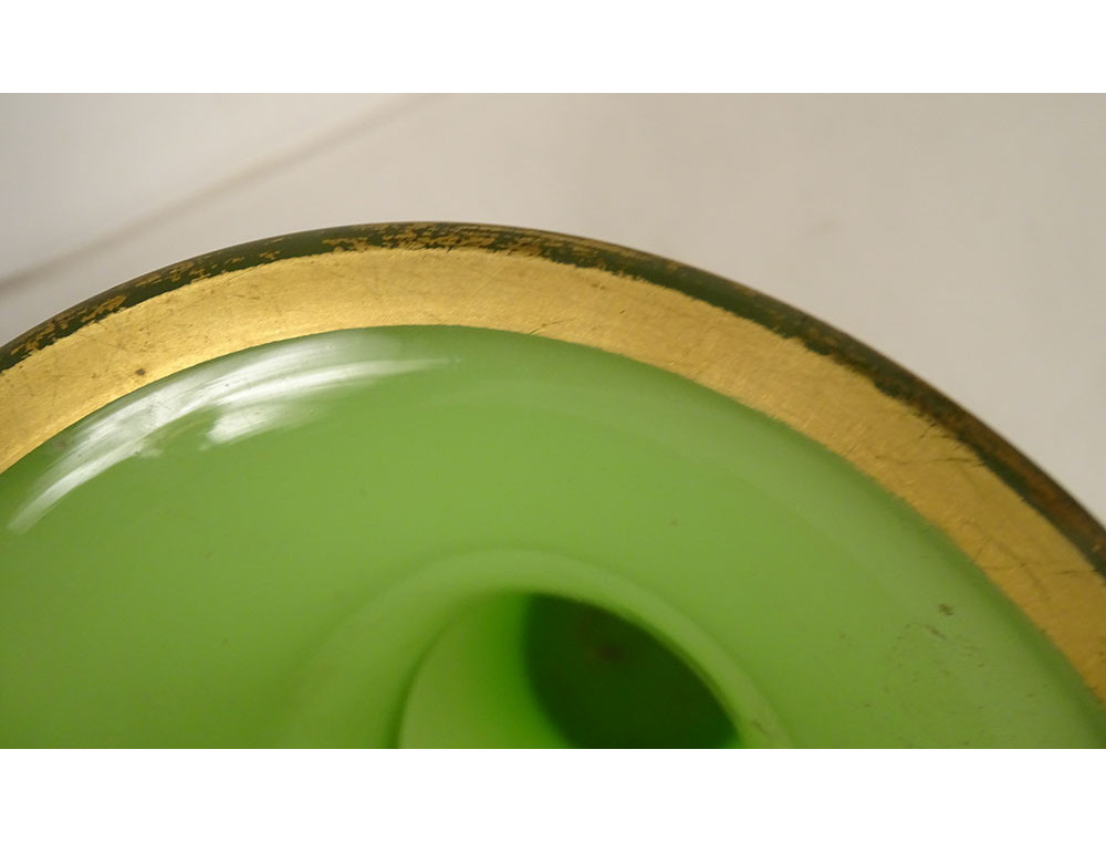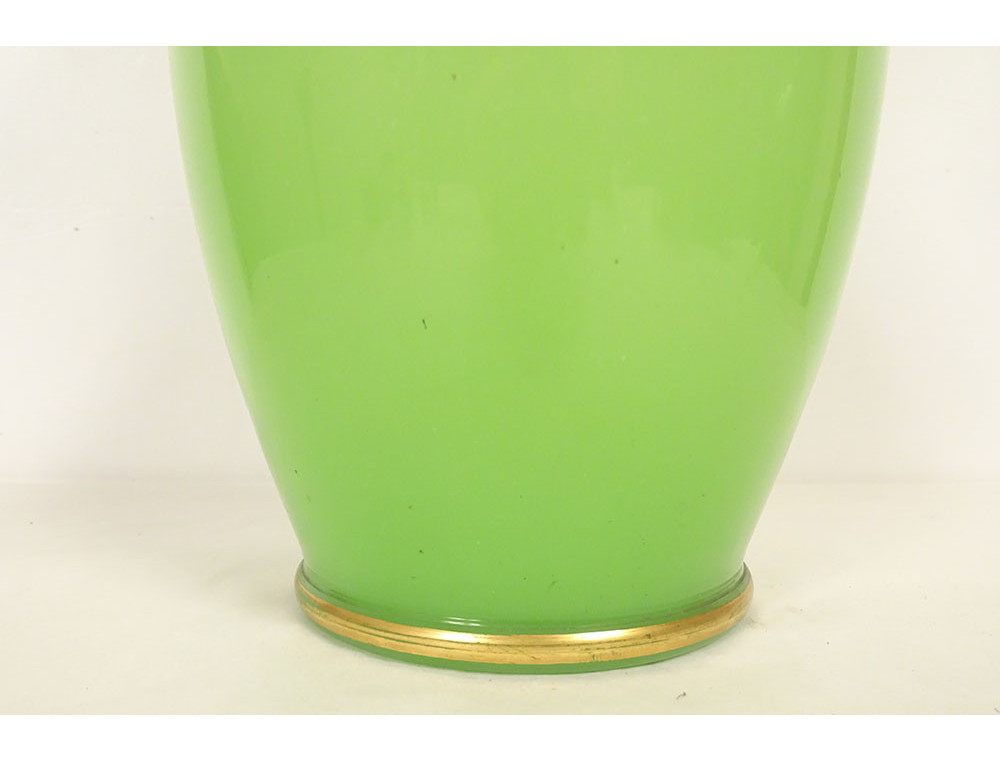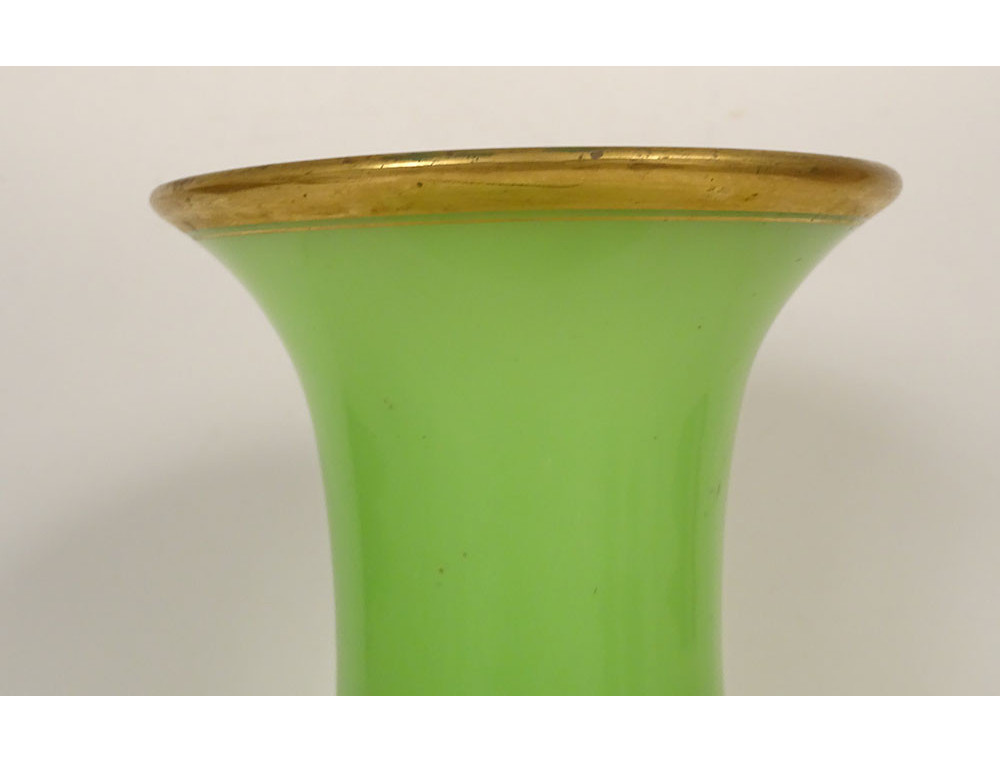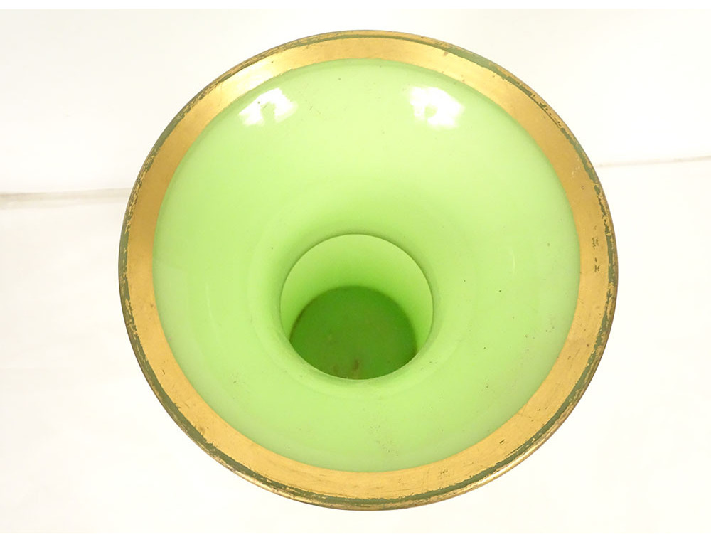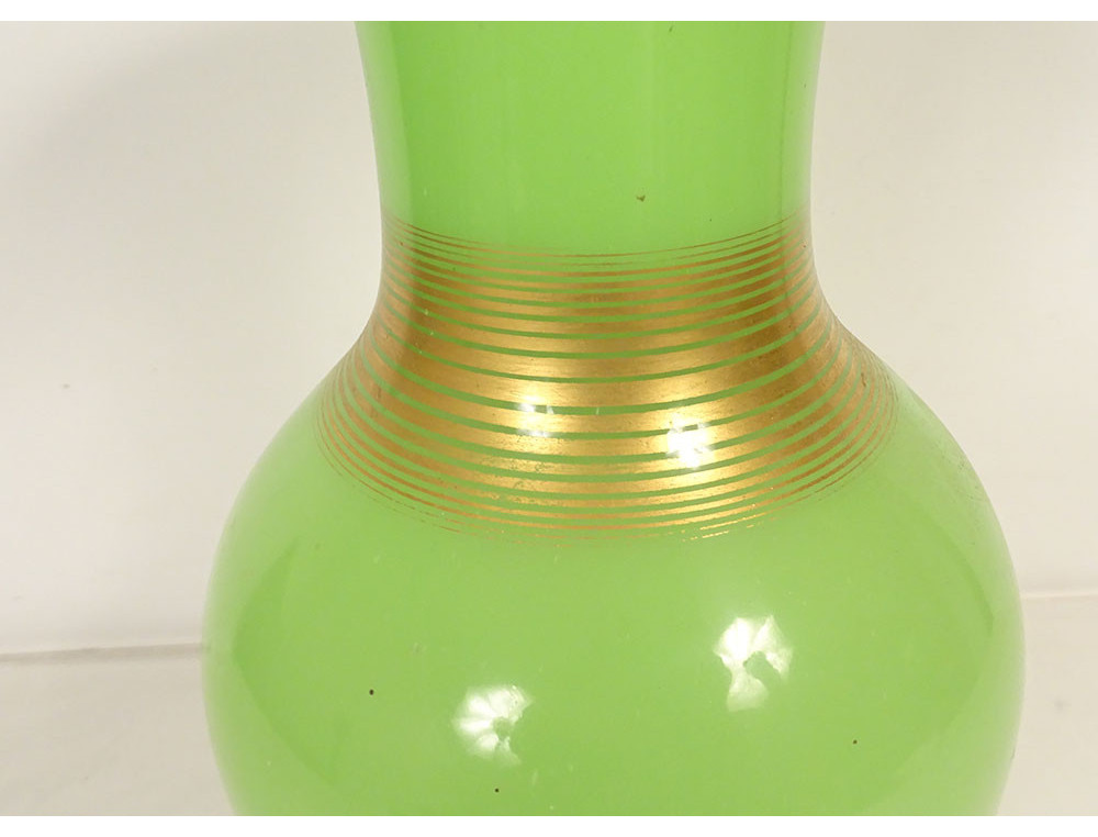 Baluster vase in green opaline glass with gilt decoration, Baccarat Napoleon III, 19th century