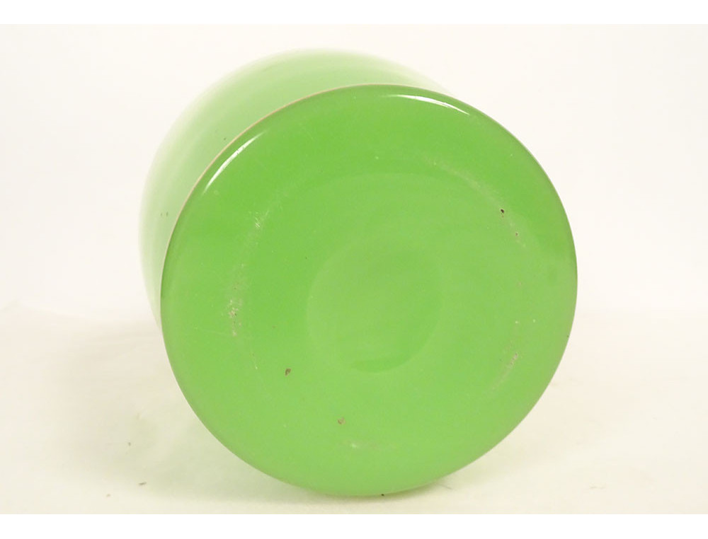 Baluster-shaped vase in green opaline enhanced with gilt fillets, possibly Baccarat, from the Napoleon III period, 19th century.