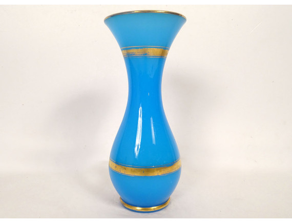 Baluster-shaped vase in blue opaline enhanced with gilt lines, most likely by Baccarat, from the Napoleon III period, 19th century.