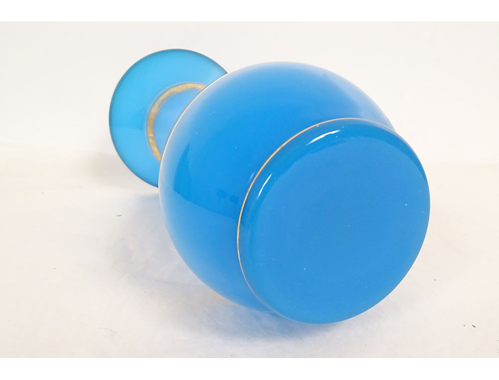 Baccarat Napoleon III 19th century blue opaline baluster vase with gilt decoration