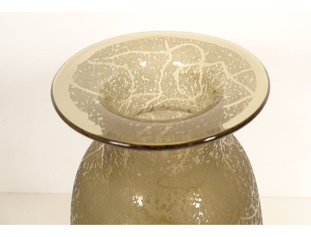 Baluster-shaped vase in colored frosted crystal (smoky style) signed Daum* Nancy France, from the Art Deco period around the 1920s, early 20th century.