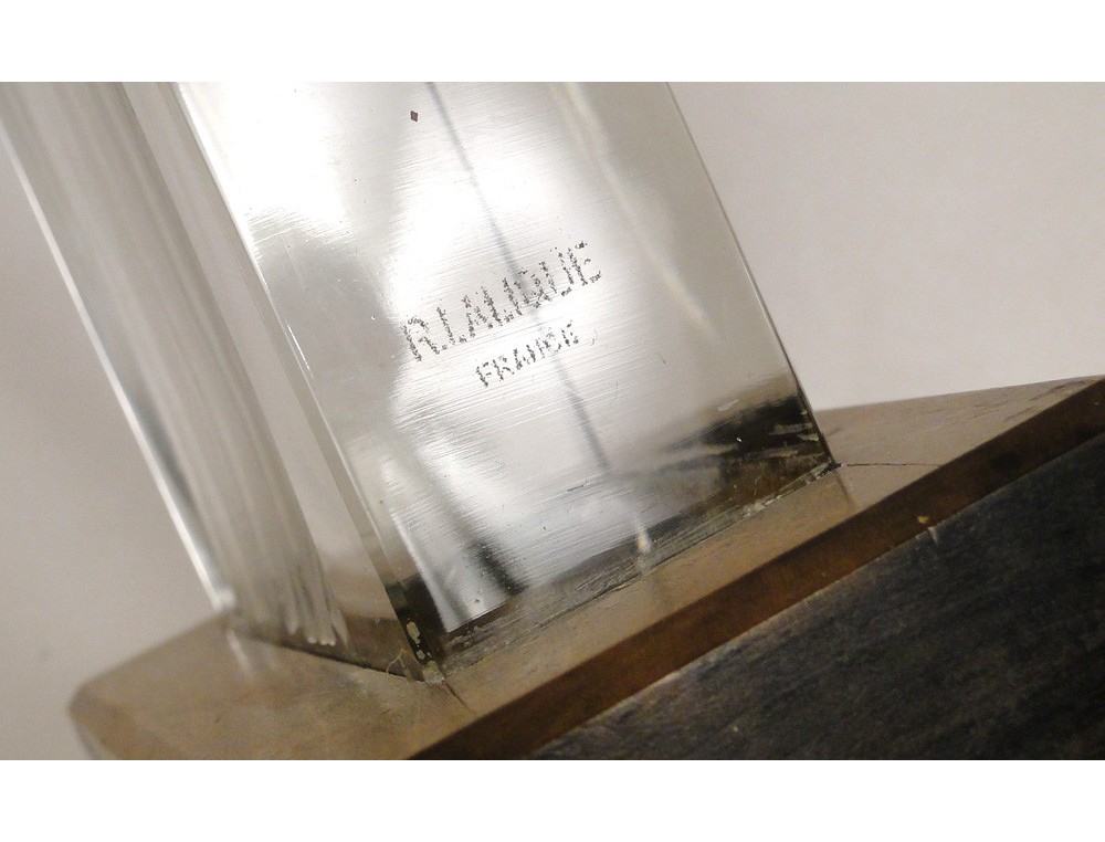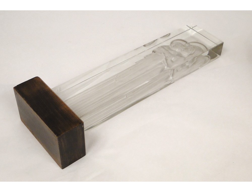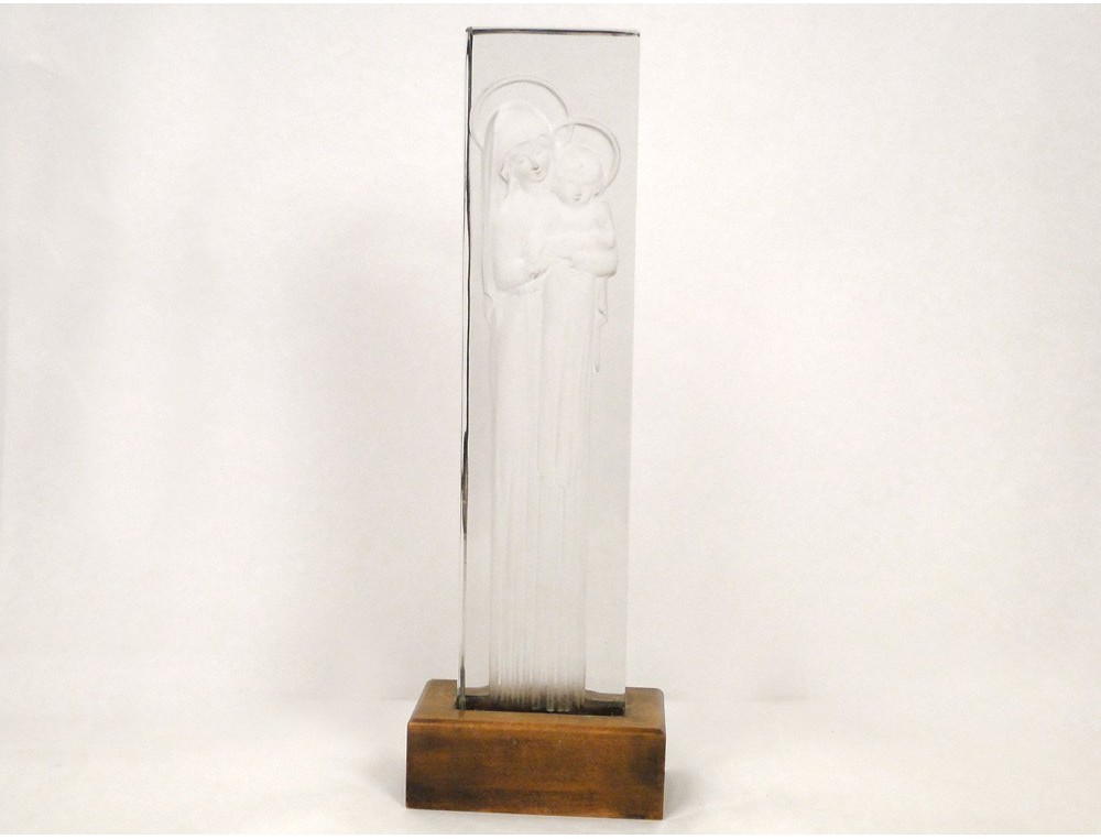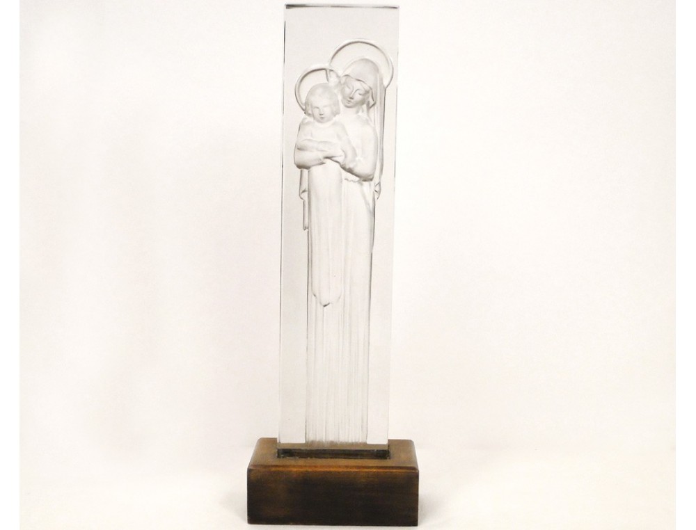 Beautiful crystal sculpture representing the Virgin and Child Jesus R.Lalique * France signed on its wooden base, vintage twentieth century.