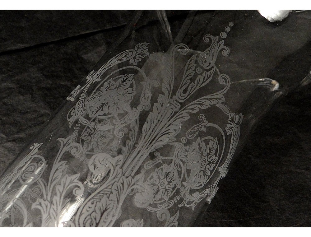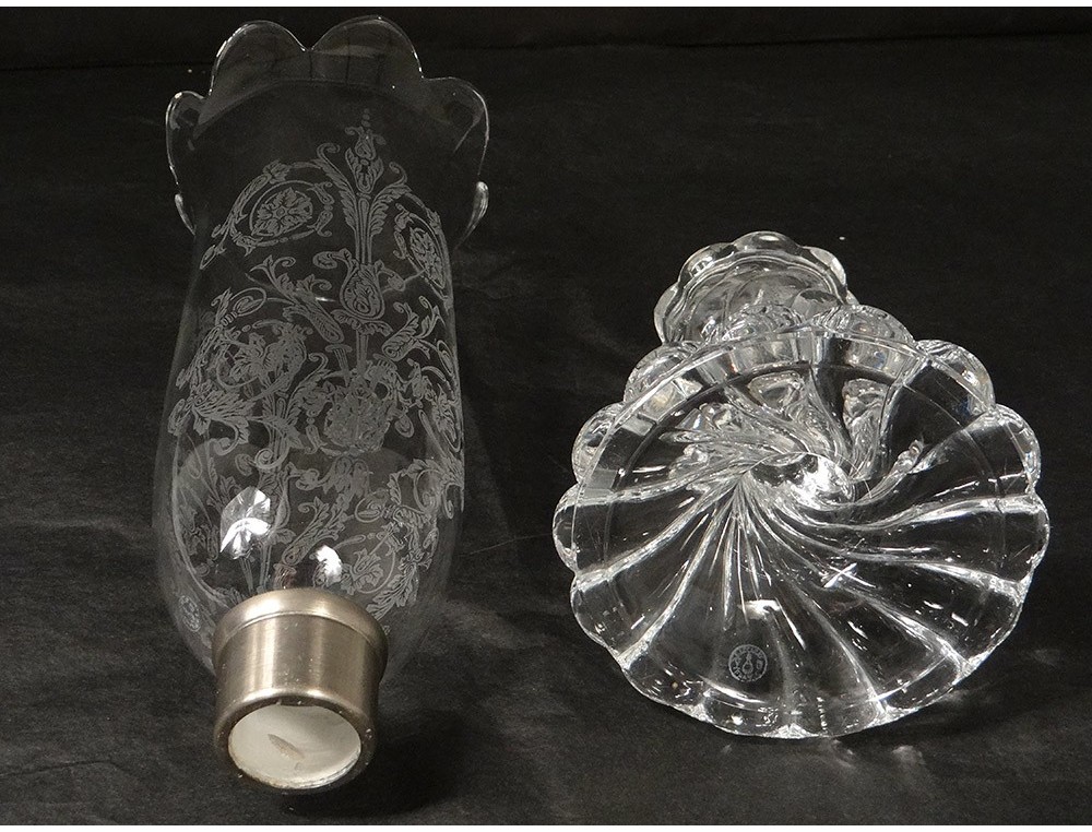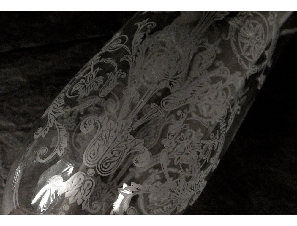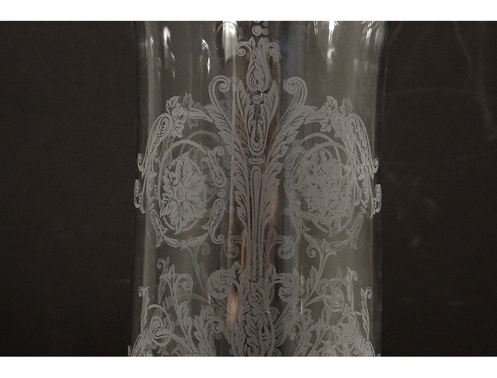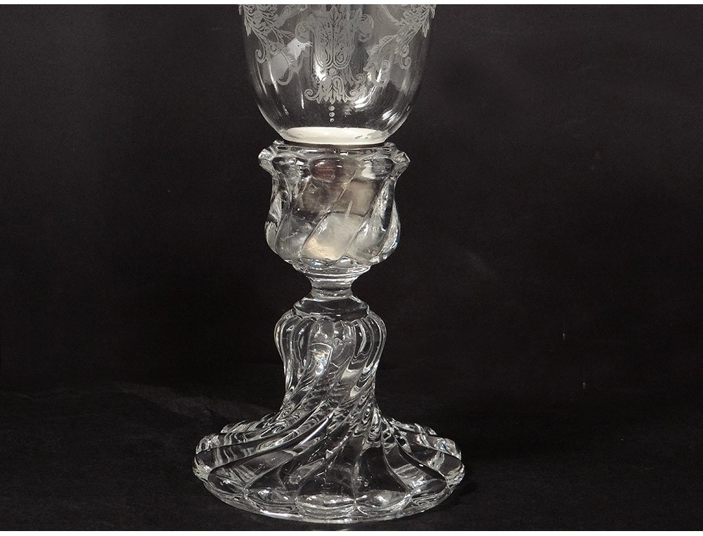 Crystal tealight signed Baccarat France, bamboo pattern, horn engraved with plant arabesques, twisted foot, vintage twentieth century.