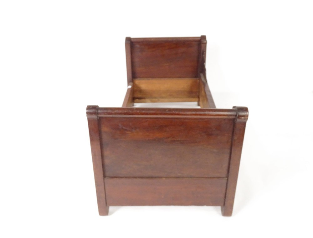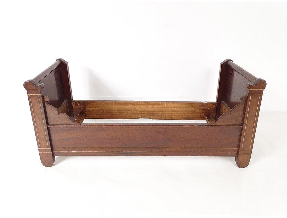 Doll's boat bed in walnut, late 19th century early 20th century.