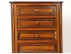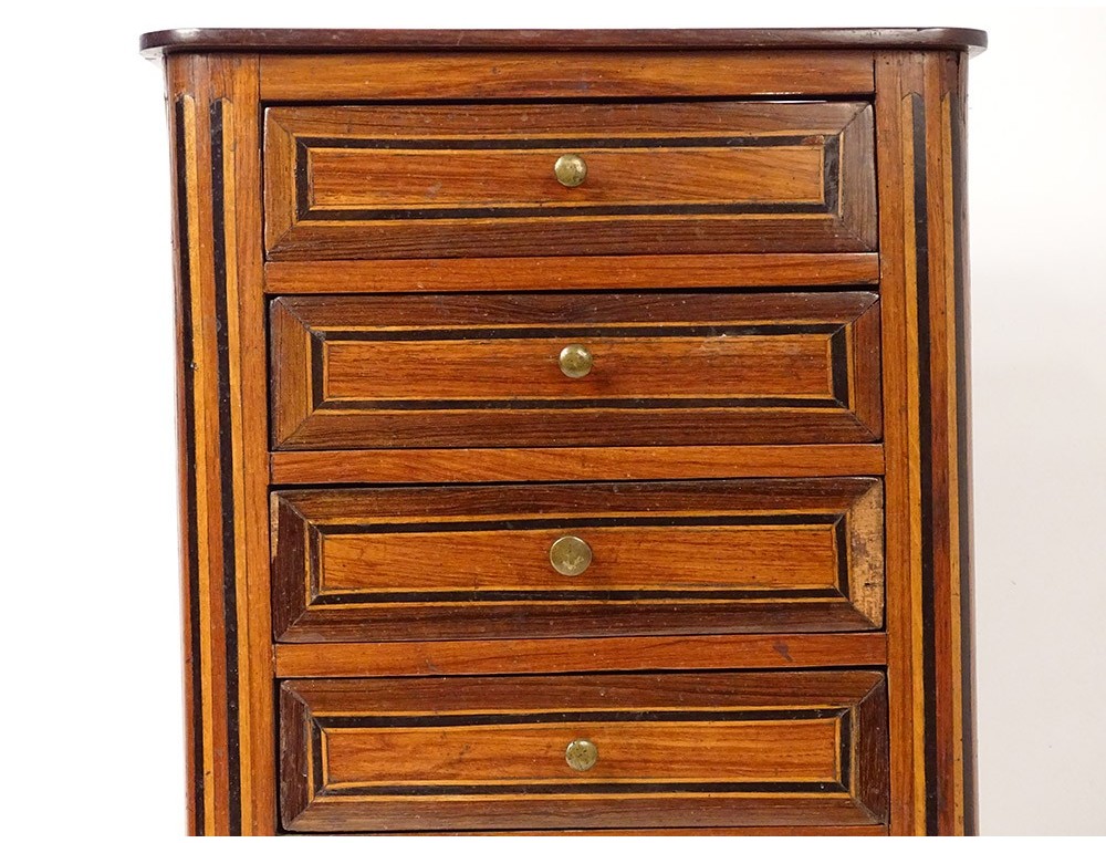 Small master cabinet in satin marquetry and various species of organic veneer, opening with five drawers,