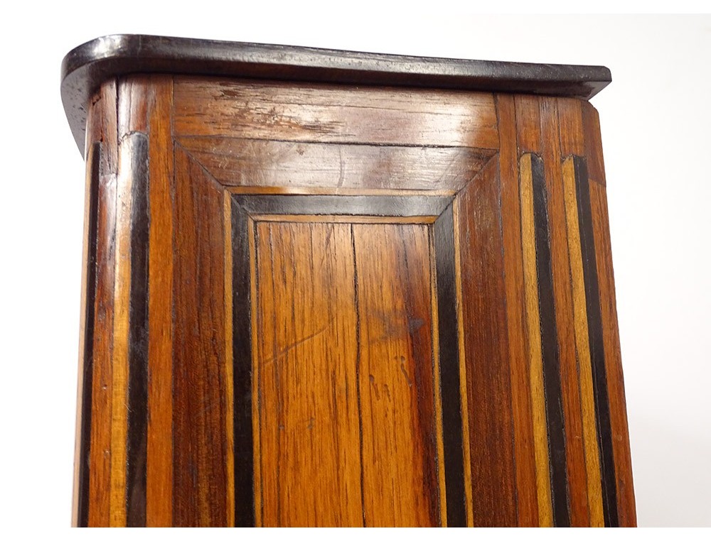 A note: a lack of veneer on one side of a drawer, a few other small gaps in veneer, slight cracks and scratches on the wood, the upper plate is not quite straight, wear of time, take a good look at the photos .