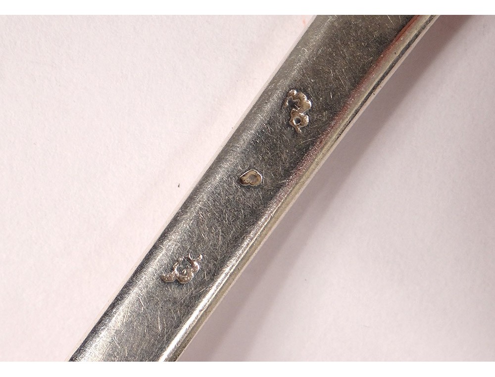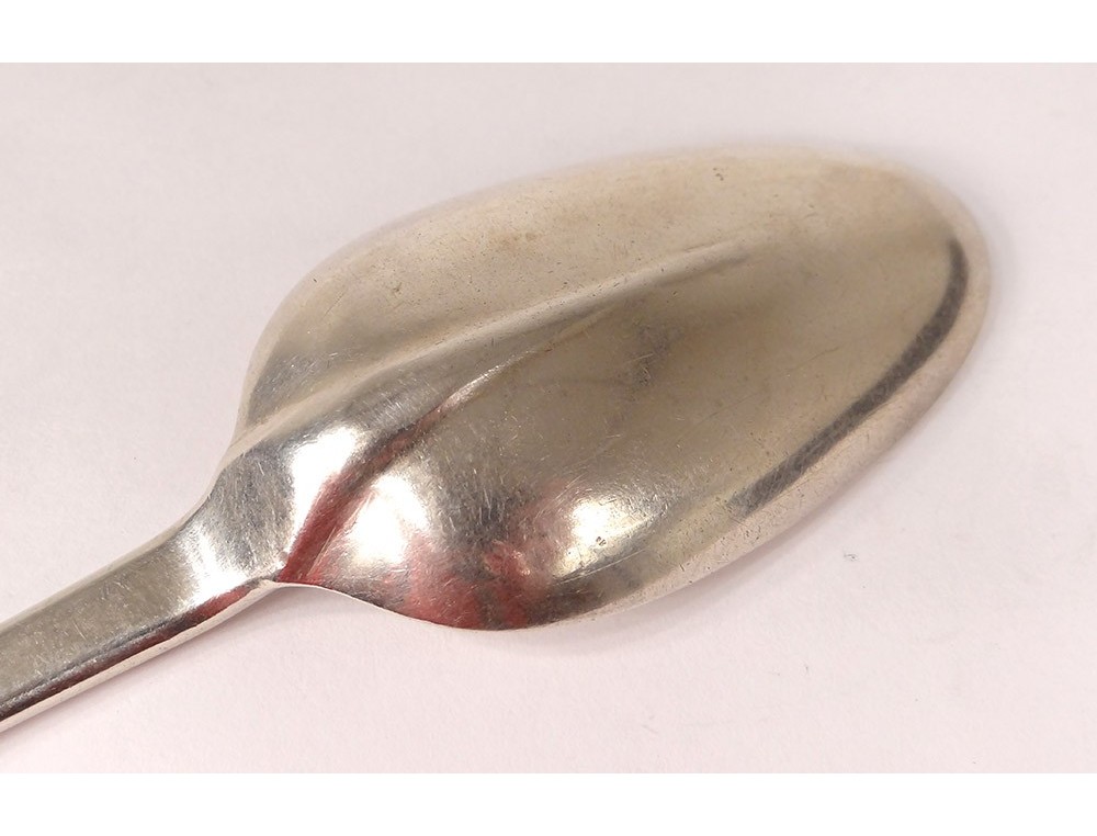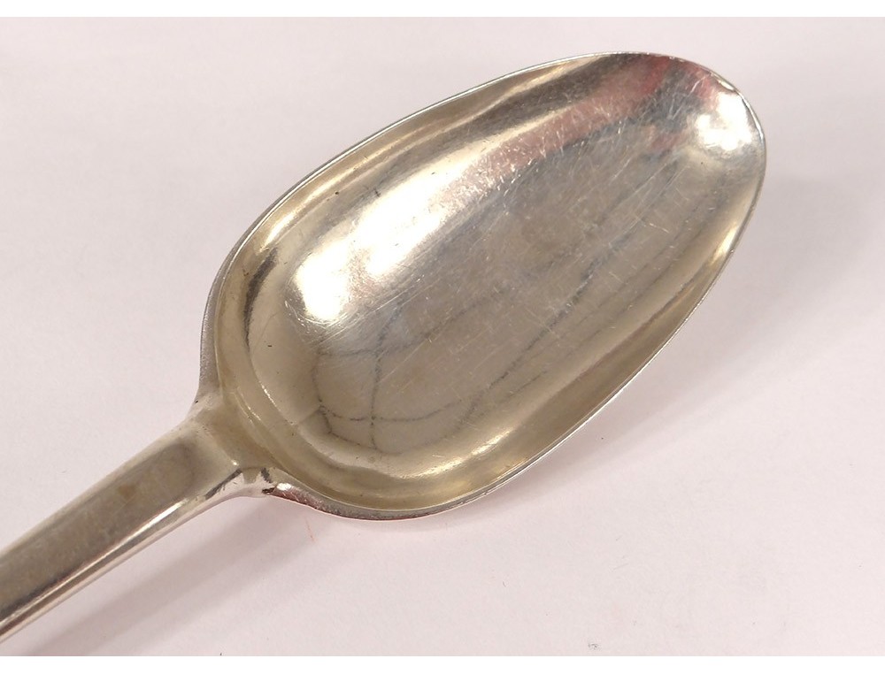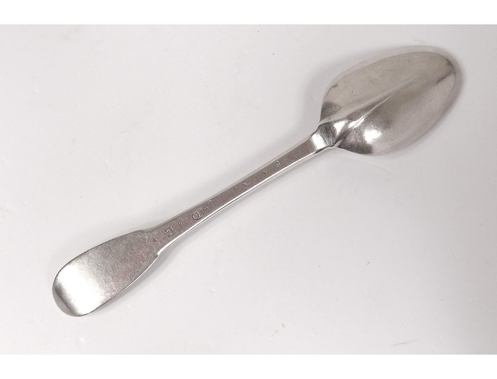 Spoon in sterling silver, model called "tail of rat", hallmarked with Farmers General, adorned on the handle of initials DG, of XVIIIth century time.