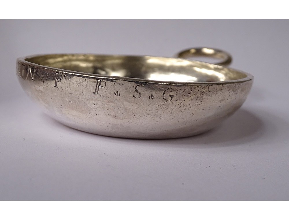 Large wine in solid silver, hallmarked by the Farmers General of Angers (date 1789), engraved by F. Pellerin FPSG on the border, vintage late 18th century.