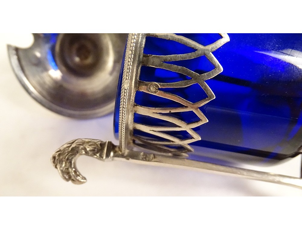 Solid silver mustard pot Coq Paris eagle heads 129gr late 18th early 19th century