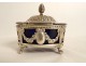 Covered salt cellar in finely chiseled solid silver, decorated with garlands and knots joining a coat of arms medallion, resting on small claw feet, lid decorated with a pine cone, hallmarked with the Farmers General of Paris (1779) and hallmark of Recense, d 18th century Louis XVI period.