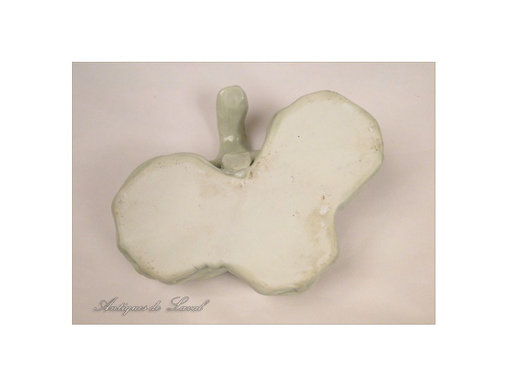 Porcelain mustard pot in the shape of three owls, vintage late 19th-early 20th centuries.